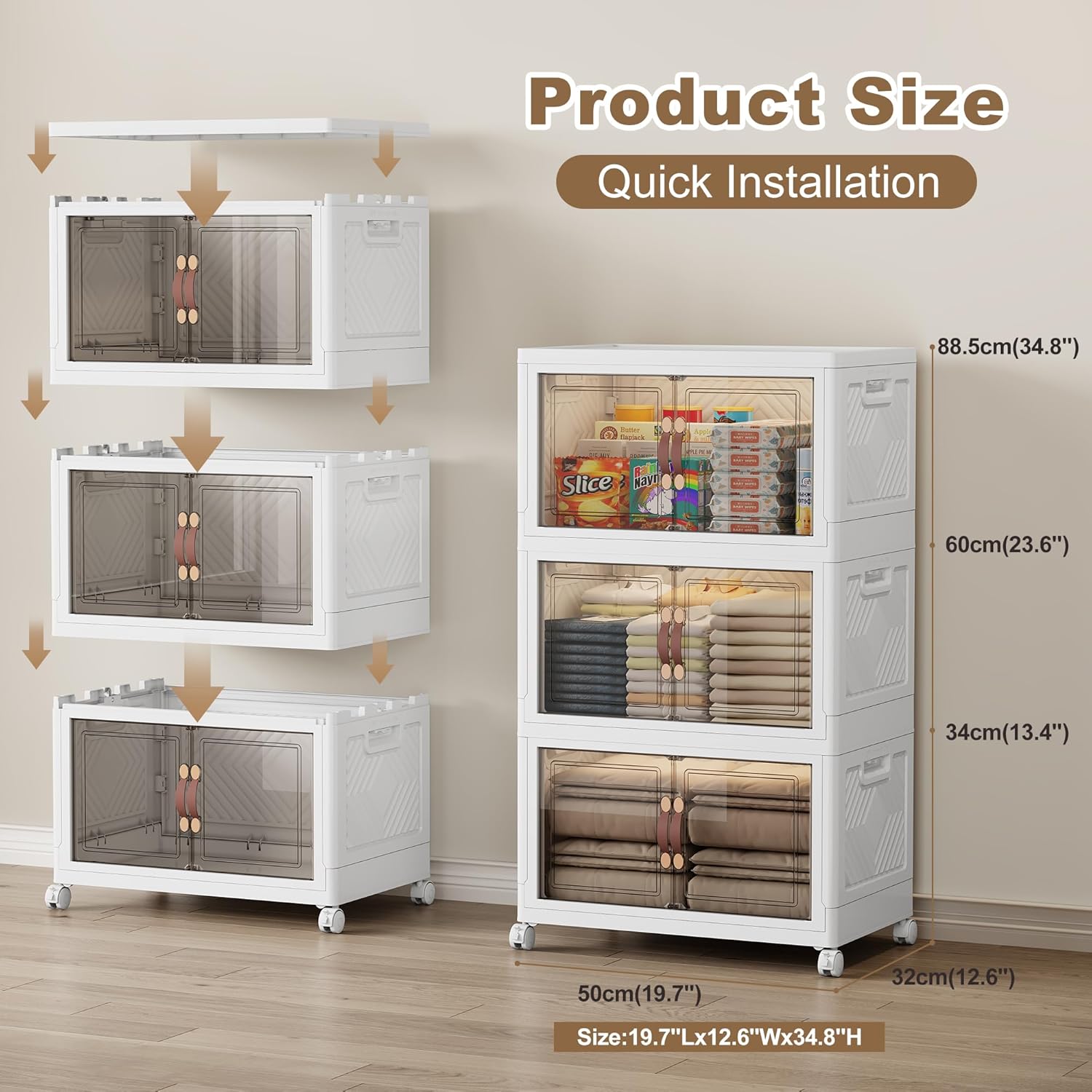 • 【Sturdy, Quick Installation】Made from food-grade polypropylene plastic, these stackable storage bins are strong, attractive and odourless. No tools are required for assembly and the interlocking slot system ensures risk-free stacking and prevents tipping. The collapsible design saves up to 50% space, making them ideal for seasonal organisation.