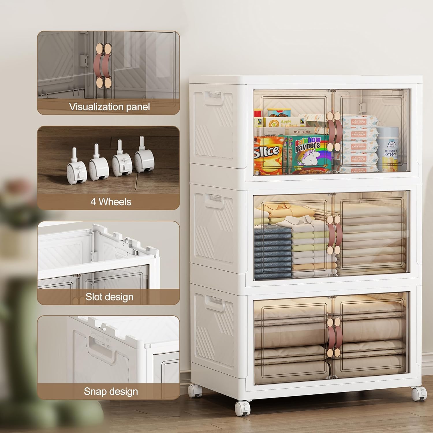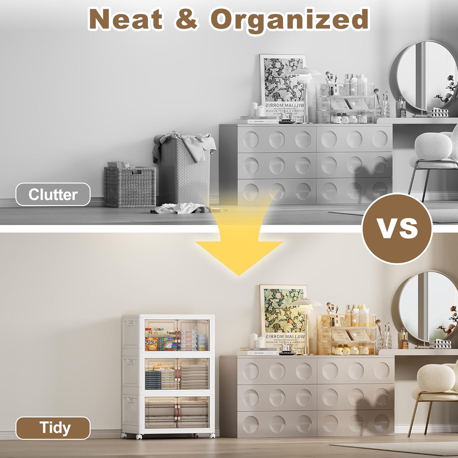 • 【Smooth Rolling Convenience】:Utilise our four wheels (2 regular + 2 wheels with brake pads) - glide your storage bin easily over any floor surface. Ultra-quiet wheels ensure seamless movement without scratches or noise, while a secure locking mechanism keeps the stacking storage bin firmly in place during storage.