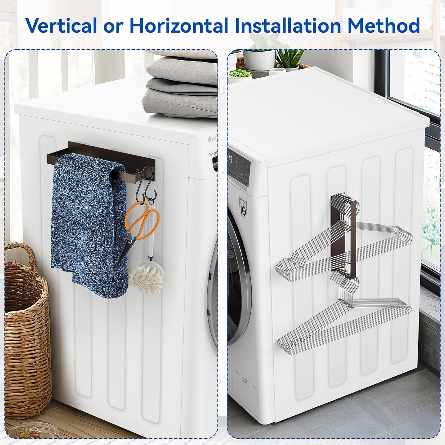 • Durable and Simple: The back is made of strong magnets and high-quality glue, and the magnetic strips will not fall off easily. The drying ball holder and hanger holder are made of high-quality metal materials with smooth paint, durable and rust-proof. Add a pleasant look to your laundry room and say goodbye to monotony.