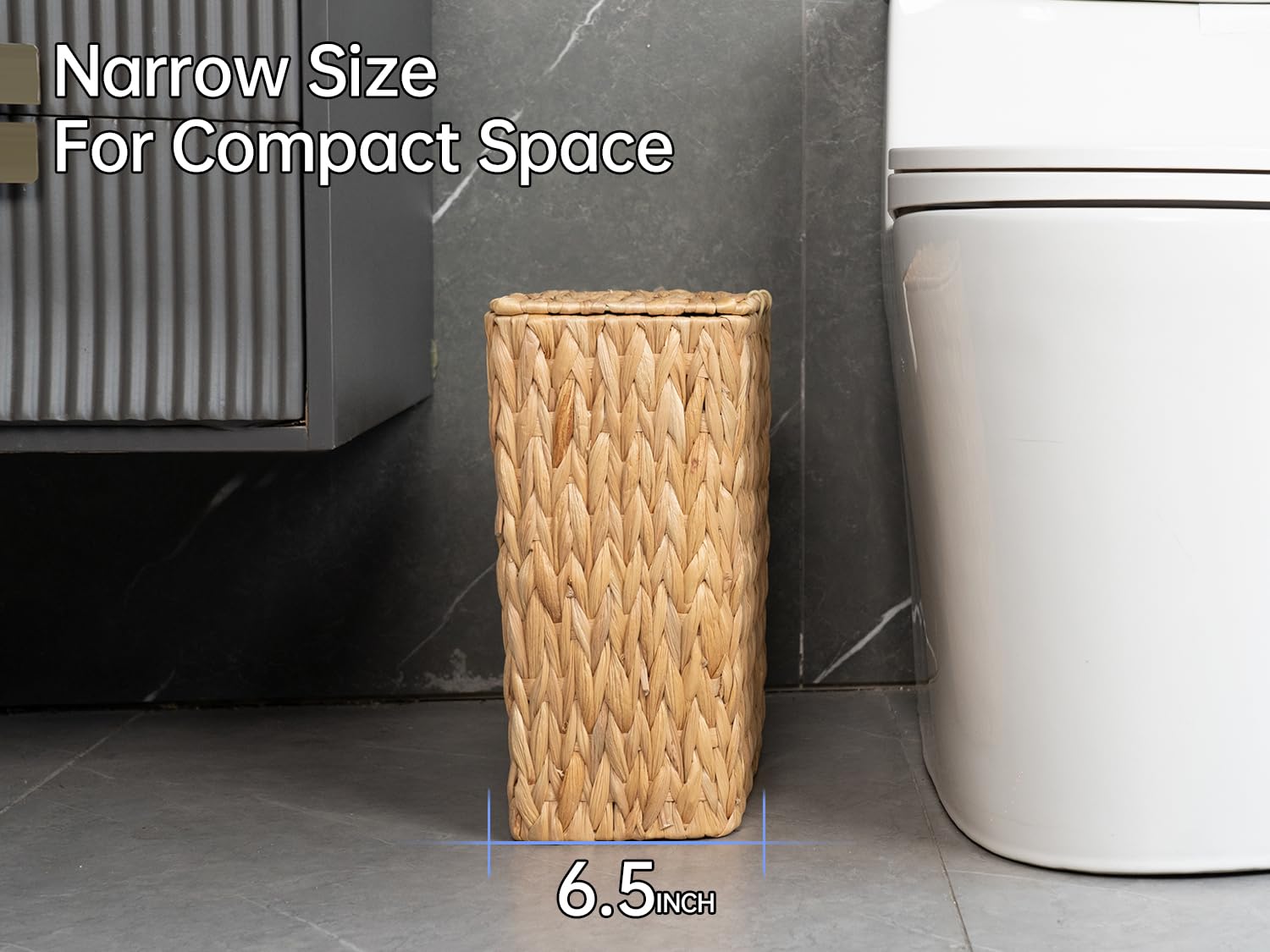 • Space-Saving Design for Compact Areas:Measuring just 13.4"H × 12.4"L × 6.5"W, this small bathroom trash can is engineered for tight corners like cramped bathroom nooks or narrow bedroom aisles. Its wicker-woven frame maximizes vertical storage without sacrificing capacity, the compact footprint liberates floor space while holding essentials–perfect for urban apartments and minimalist setups