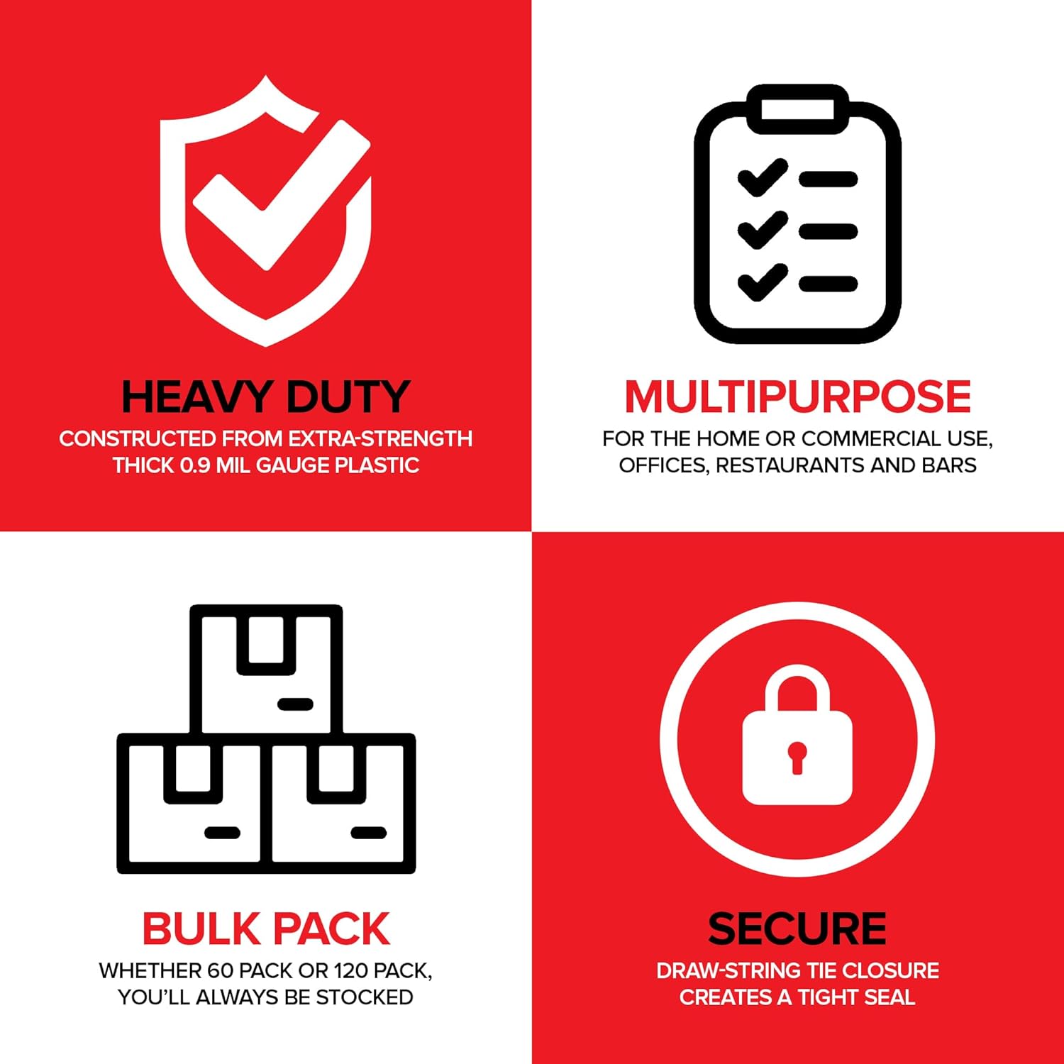 • Easy Tie Closure: Designed for quick use, these bags can be tied securely at the top to keep trash contained and easy to carry.
