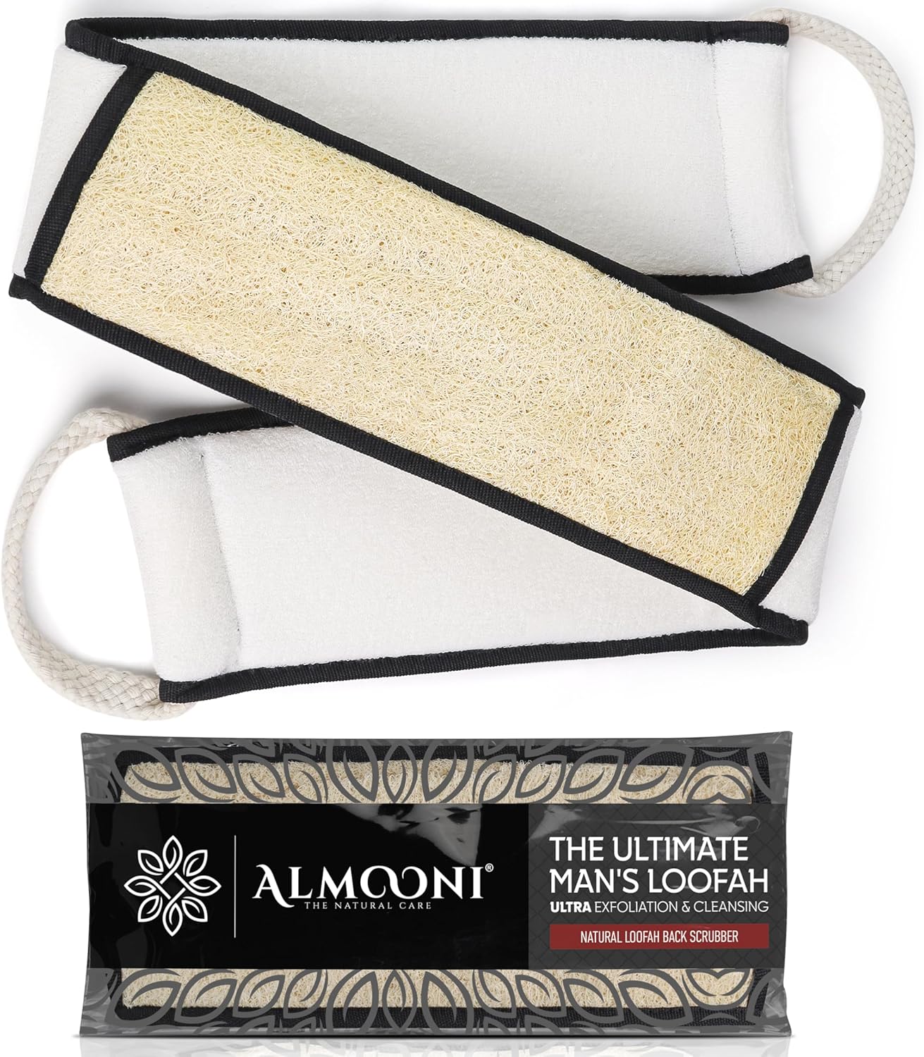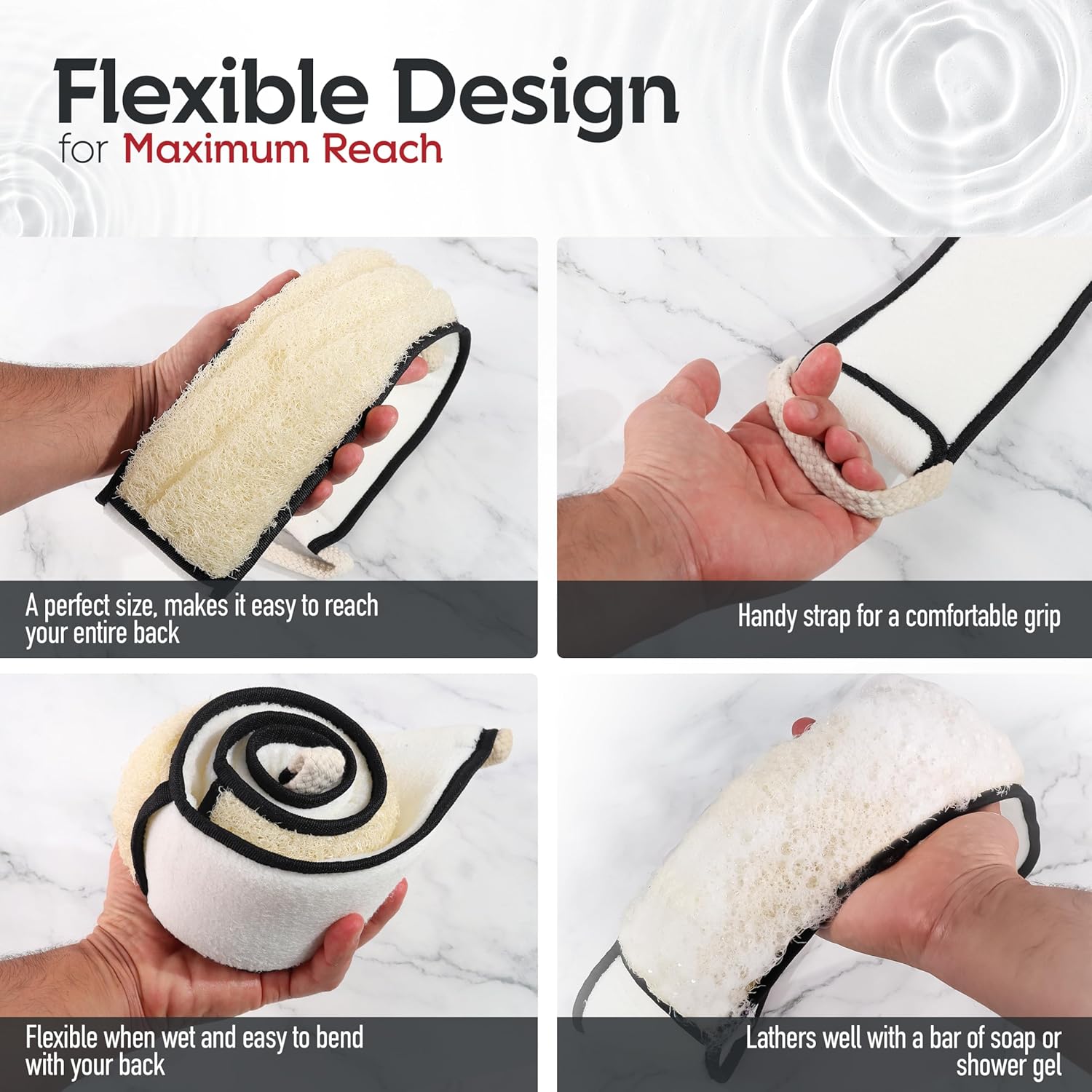 • LIGHTLY ABRASIVE NATURAL LOOFAH FOR A TRULY CLEAN BACK as it leaves your back skin invigorated and more receptive to lotions and moisturizers. The reverse sides have soft terry cloth cotton fabric to remove body oils, dirt and debris.