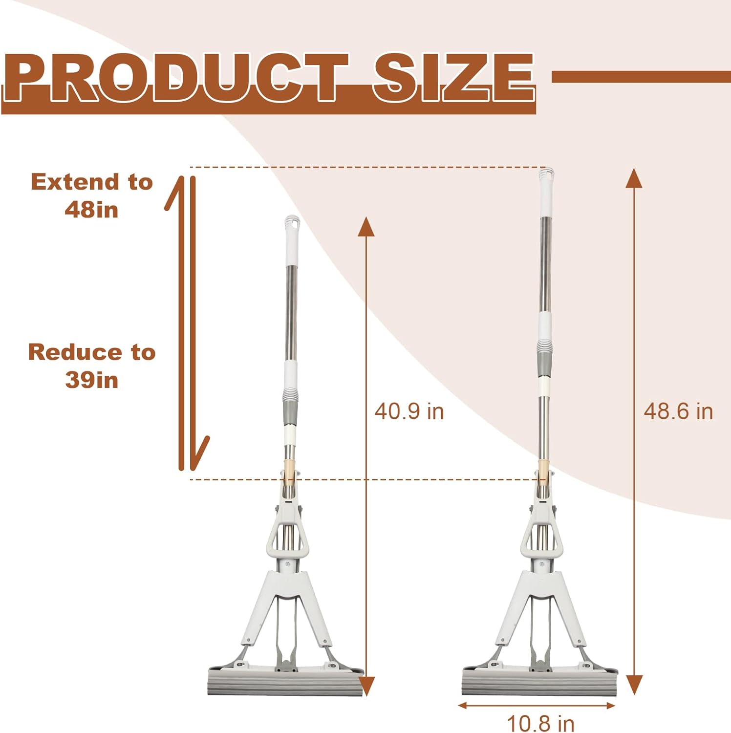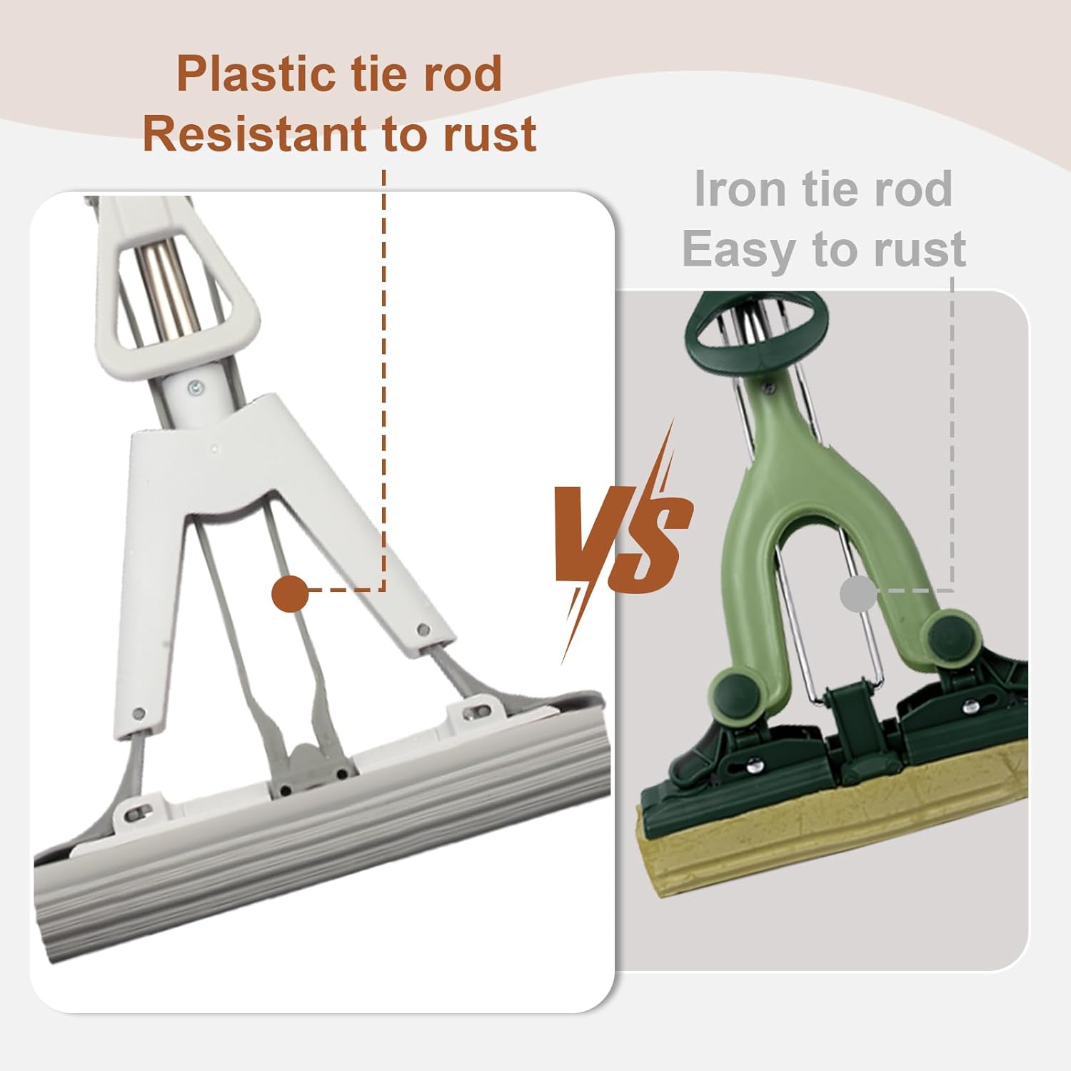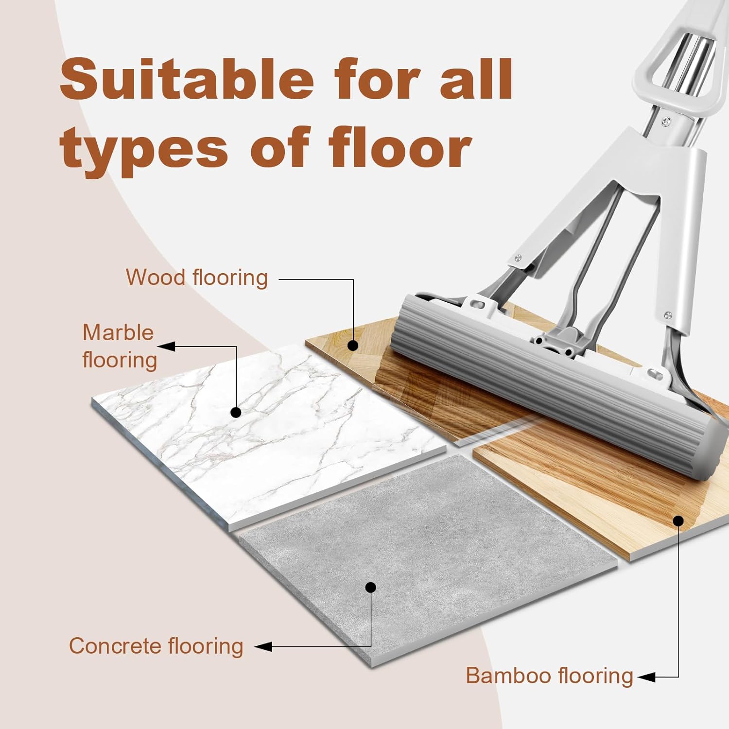 • SUPER ABSORBENT SPONGE HEAD: Made with high-quality sponge material, it absorbs water strongly and cleans stains effortlessly. Suitable for various floor types such as wood, marble, and tiles, ensuring excellent cleaning results.