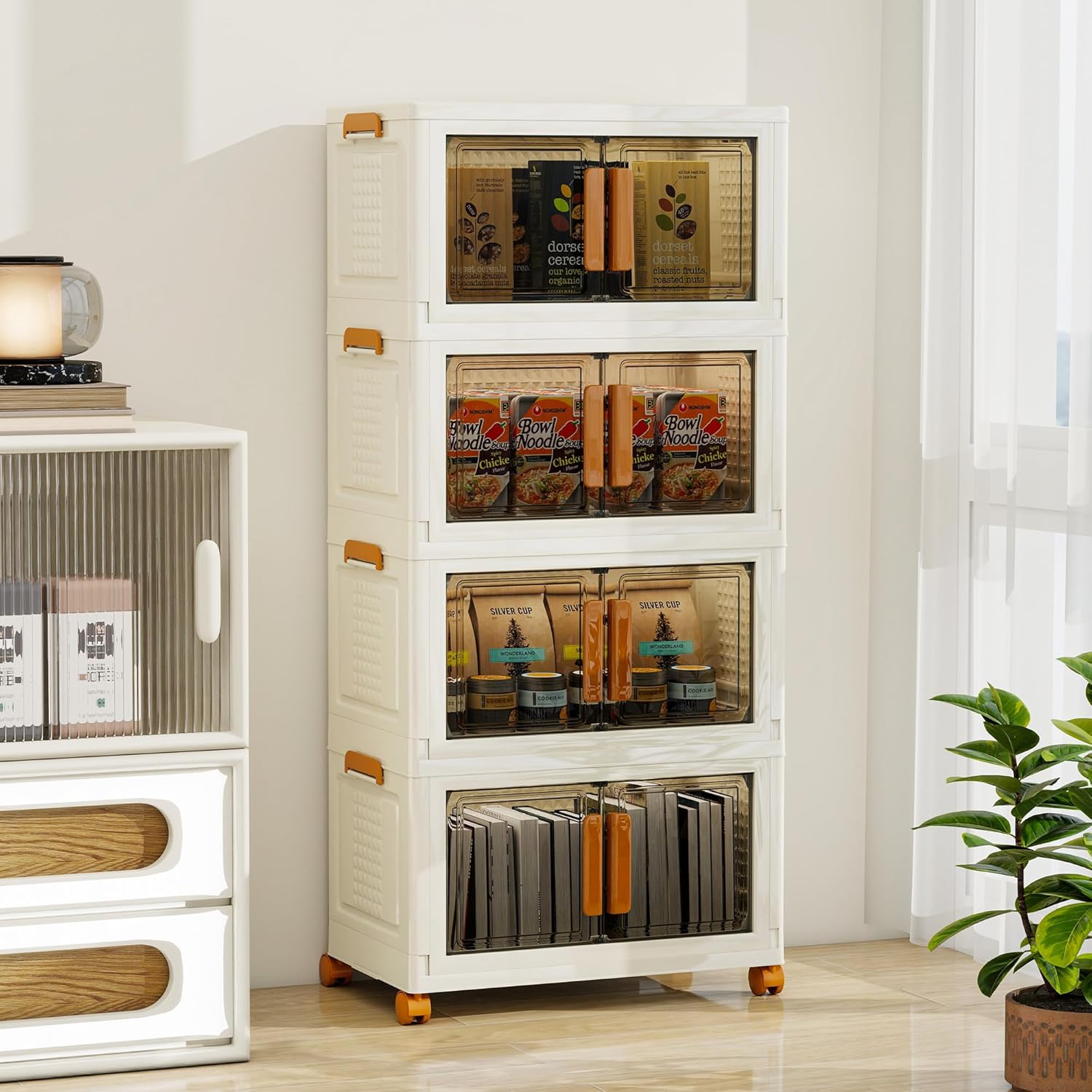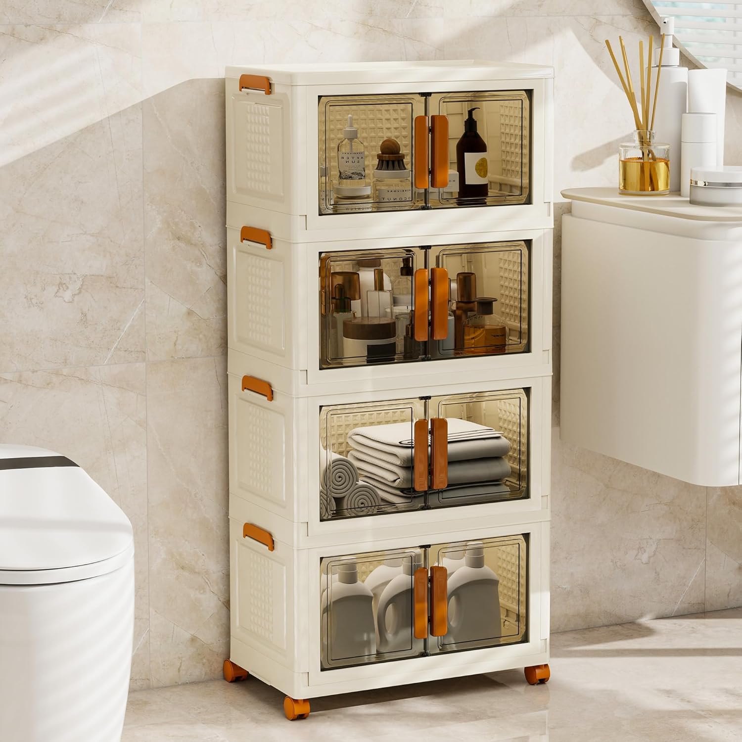 4 Tier Stackable Plastic Storage Bins with 1 Lid 35 QT/Tier, Collapsible Plastic Box Storage Bin with Wheels, Home Containers Boxes Closet Organizers for Living Room, Office, Dorm