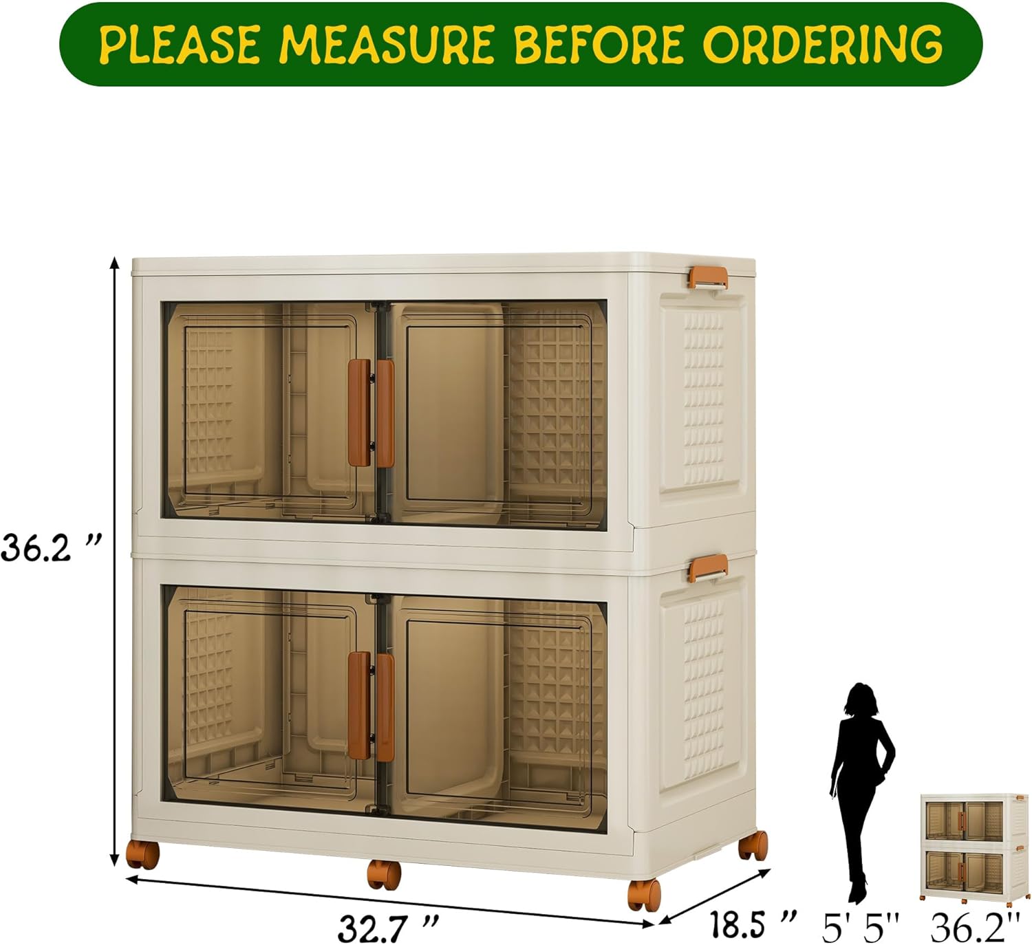 2 Tier Extra Large Stackable Storage Bins with 1 Lid 205 QT/Tier, Collapsible Plastic Box Storage with Wheels, Home Containers Boxes Closet Organizers for Living Room, Office, Dorm