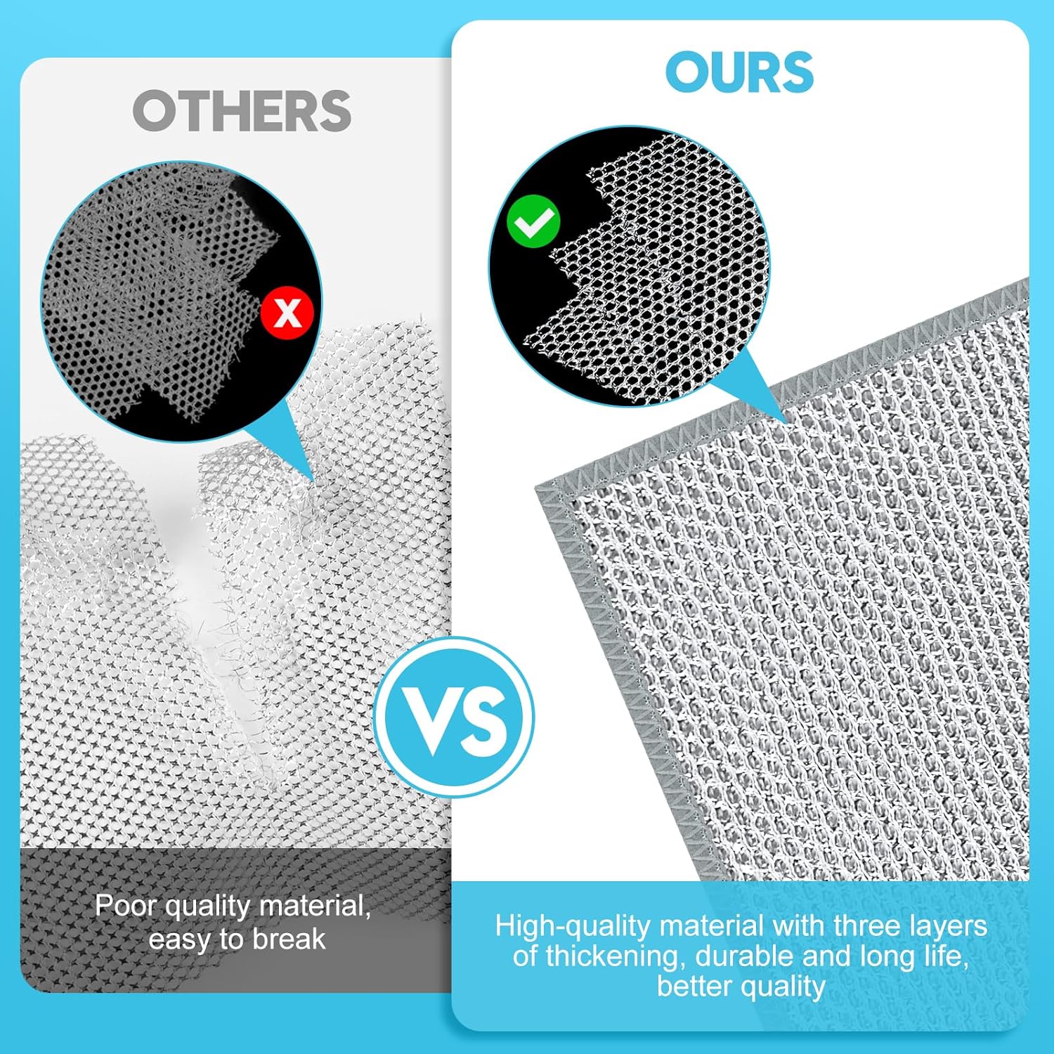 • 【Perfectly Sized】You will receive 10 pieces of well-made multipurpose wire miracle cleaning cloths, each measuring 9.87“ x 9.87”, with hemmed edges so they won't fall apart during cleaning. This design is suitable for handheld use without hurting your hands, provides enough surface for easy maneuvering, and covers dirt effectively, making it a top choice for everyday kitchen cleaning.