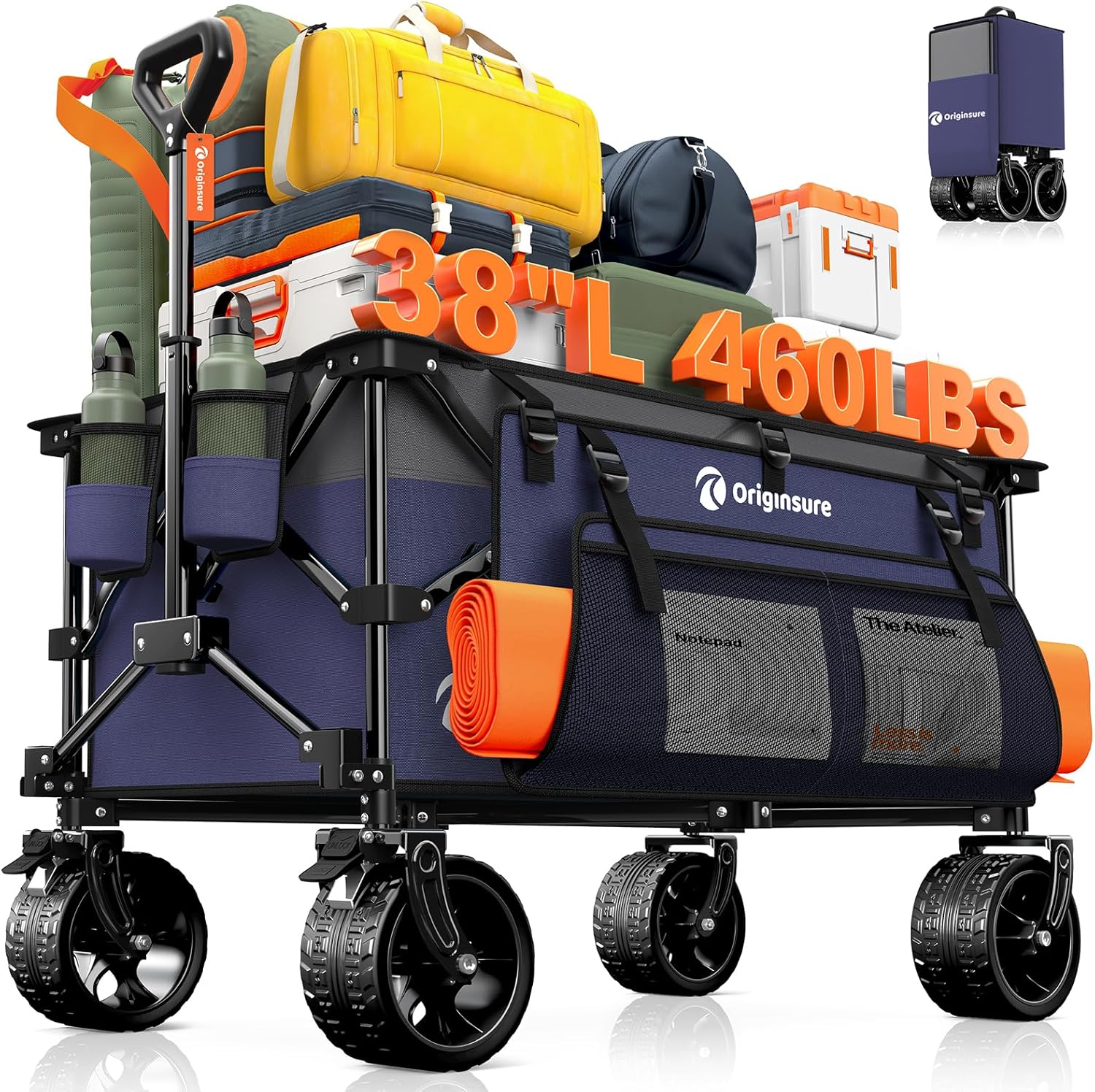 • 【𝟳.𝟲𝟵 𝗰𝘂 𝗳𝘁 𝗟𝗮𝗿𝗴𝗲 𝗖𝗮𝗽𝗮𝗰𝗶𝘁𝘆 𝘄𝗶𝘁𝗵 𝗦𝗺𝗮𝗹𝗹𝗲𝗿 𝗙𝗼𝗹𝗱𝗲𝗱 𝗦𝗶𝘇𝗲 𝗣𝗼𝗿𝘁𝗮𝗯𝗹𝗲 𝗖𝗼𝗹𝗹𝗮𝗽𝘀𝗶𝗯𝗹𝗲 𝗕𝗲𝗮𝗰𝗵 𝗪𝗮𝗴𝗼𝗻】Originsure foldable wagon cart, 37.40 "L x 24.21 "W x 24.00 "H large unfolding size, 7.69 cu ft/220L massive storage space, double the capacity of similar wagons. Adopting an innovative folding design that maintains its height, the Capacity reduces to 1.36 cu ft when folded, only 1/3 of other carts. Compact and space-saving, it can be perfectly stored in the car trunk and room corners.