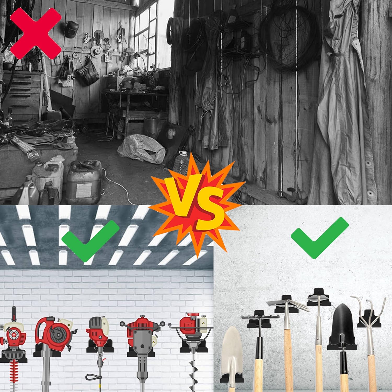 • 【Versatile & Space-Saving Garage Organizer】This wall-mounted tool rack securely holds weed whackers, grass trimmers, hoses, power tools, and more! Perfect for garages, gardens, basements, or warehouses, its multi-purpose design maximizes vertical storage, keeping your space clutter-free.