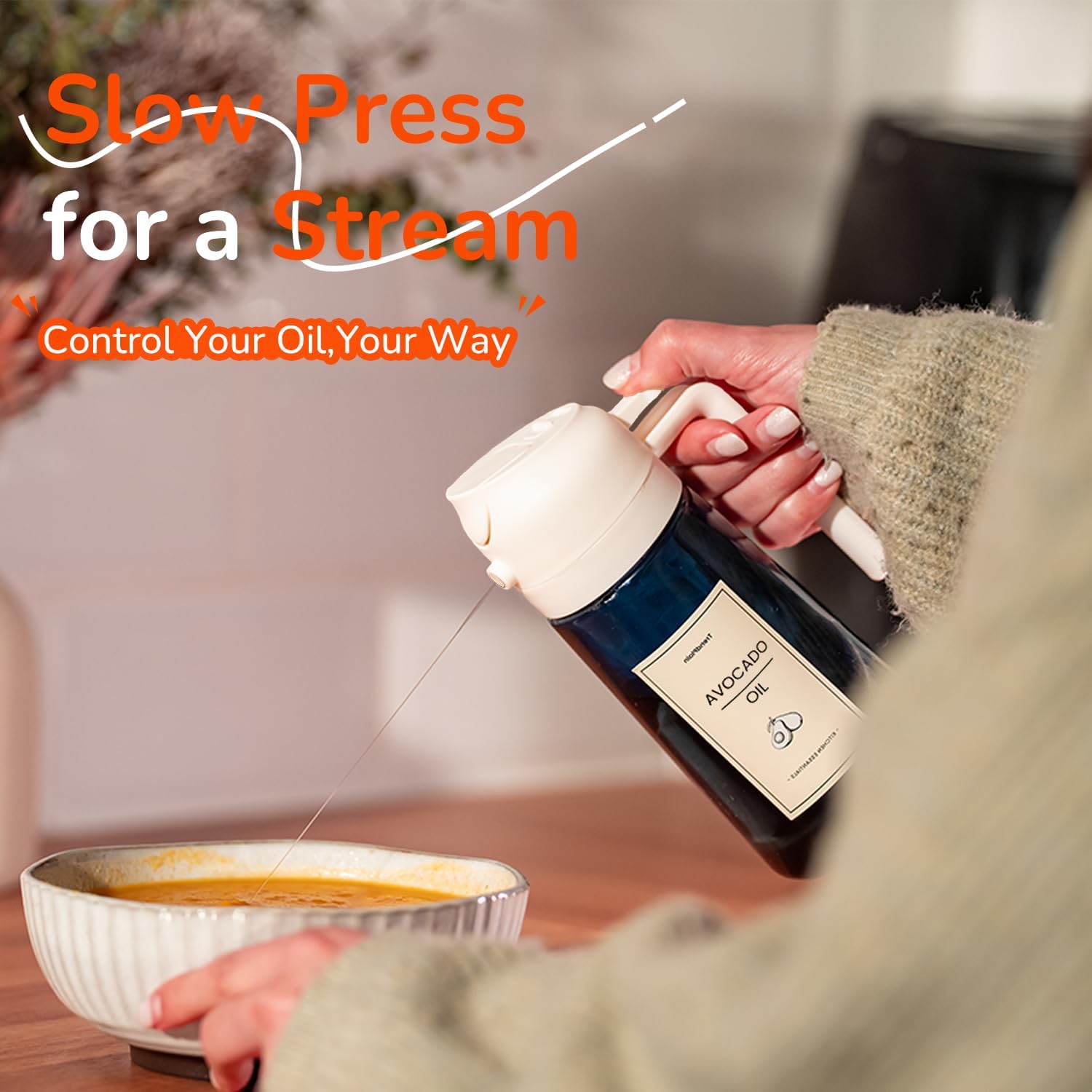 • Innovative Spray Nozzle Design: Offers precise control with a fine mist from quick presses and a steady stream from slow presses. A reliable cooking oil sprayer for all your cooking needs
