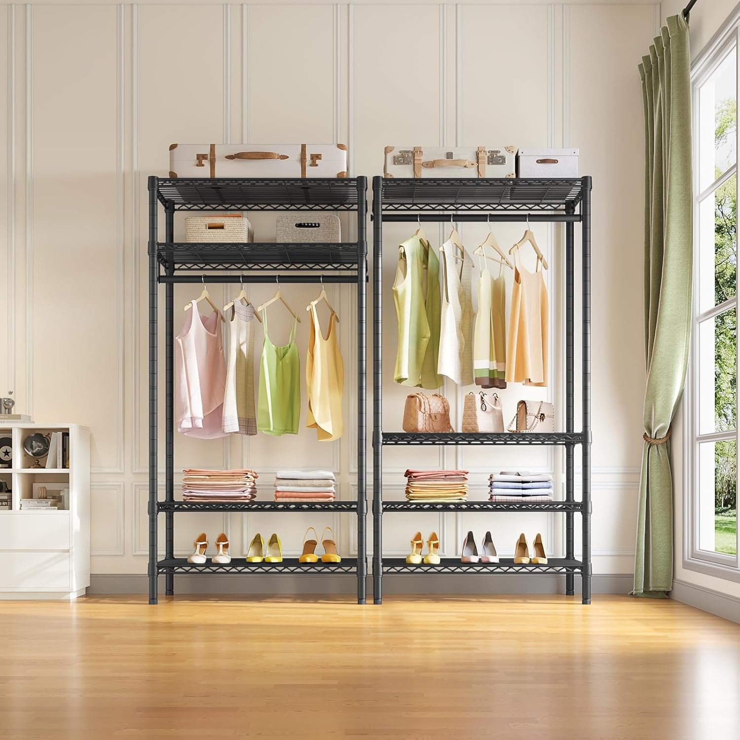 • 【Ample Storage Place】 The Garment Rack is designed with 4 tiers shelves and hanger rod, provide ample storage place, supporting a max load of 420lbs. Perfect for clothes, bags, box, shoes, accessories, or other household items