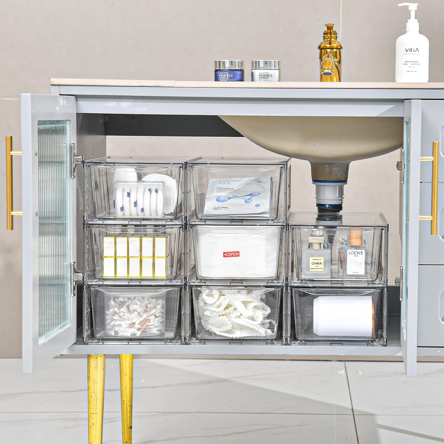 • TRANSPARENT DESIGN & EASY ACCESS - 12"L x 7.2W x 4.5"H. The stackable storage drawers are made of clear acrylic, allowing you to easily see the contents. The drawer organizer has built-in guide rails and can be pulled out smoothly,you can easily access what you need,but also adds a stylish and visually appealing look to your space