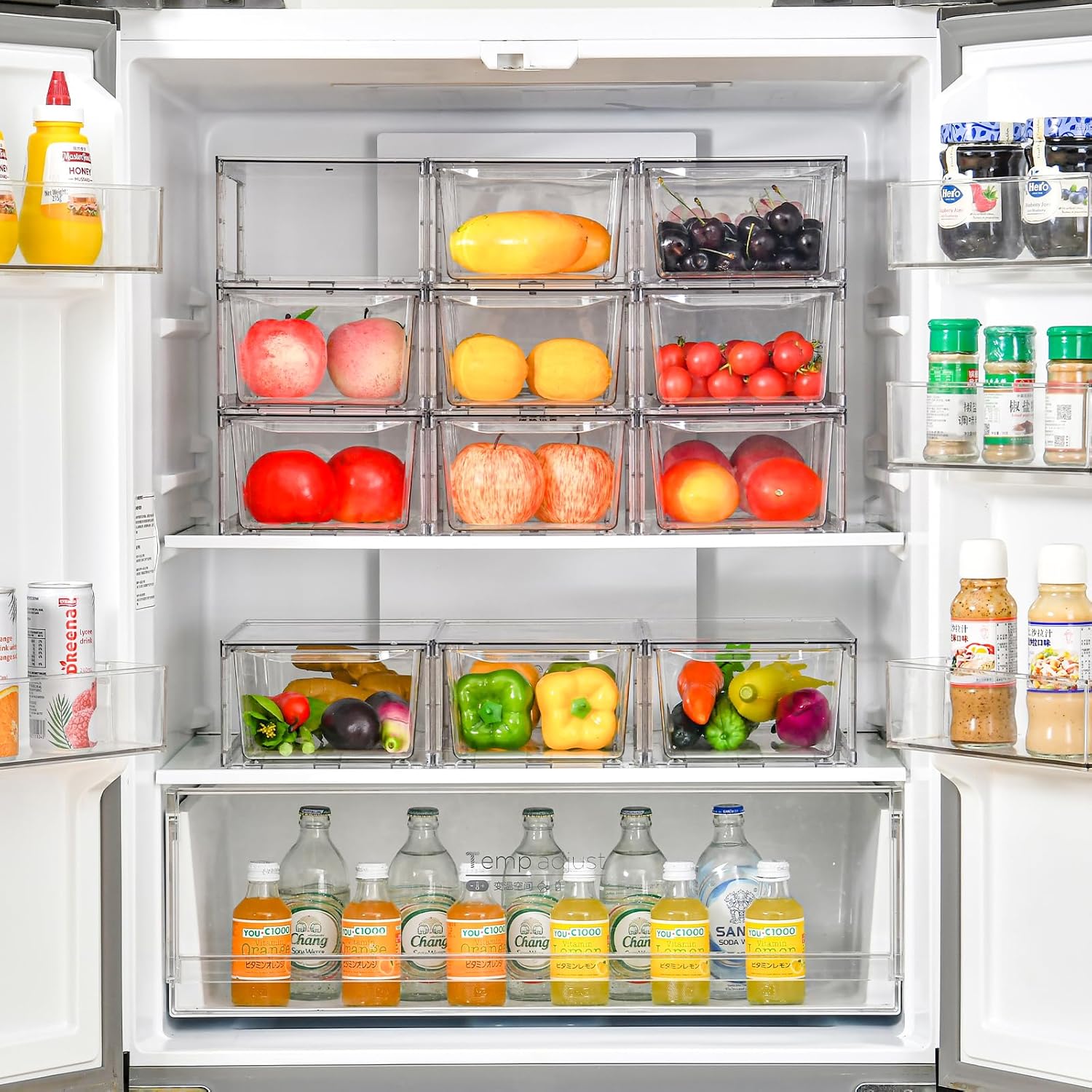 Plastic Drawers Storage, 6Pack Clear Stackable Storage Drawers, Acrylic Storage Bins with Drawers for Fridge Organizers, PlasticDrawers Stackable for Makeup Organizers Cosmetic Display, Medium