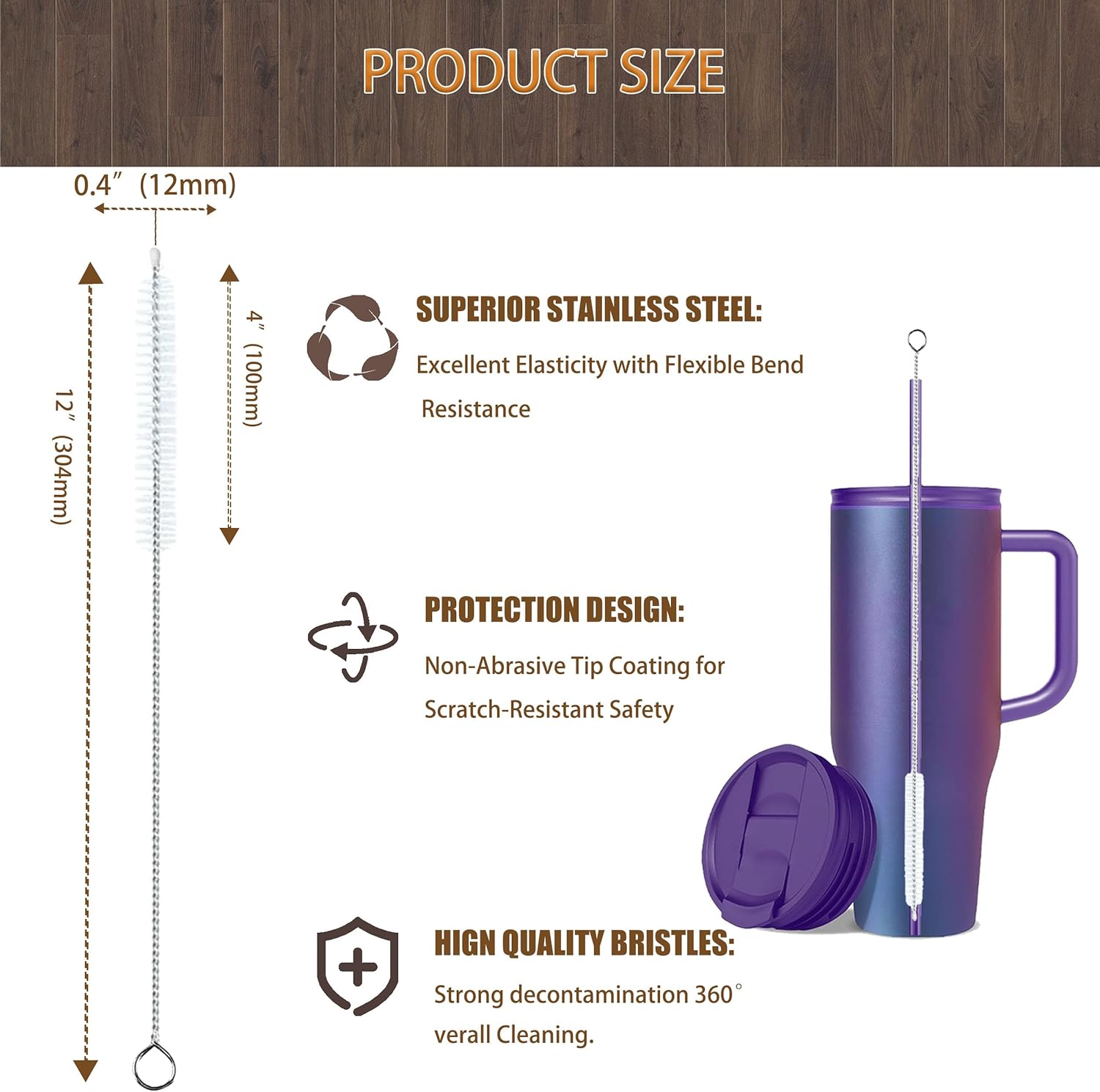 • 【Heat-Resistant & Shape-Restoring Design】 Engineered with a semi-flexible core, the Stanley straw cleaner brush bends to fit tumbler curves yet snaps back flawlessly—even after scrubbing metal straw cleaner-grade steel. The 304-grade handle and heat-resistant bristles (60°C-proof) outperform warping green pipe cleaners, making it ideal for sanitizing straw cleaner brush set kits or deep-cleaning tasks.