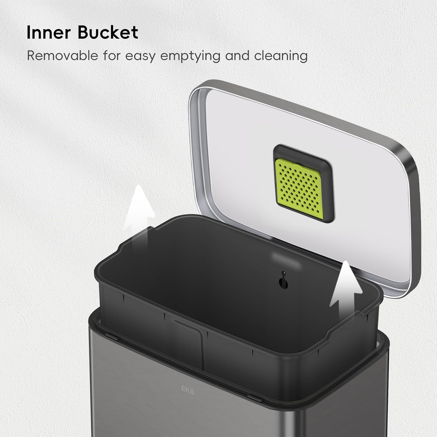 • Elevated Inner Bucket with Handles: The Madison stainless trash can features a raised inner bucket with convenient handles, ensuring swift and hassle-free bag replacement.