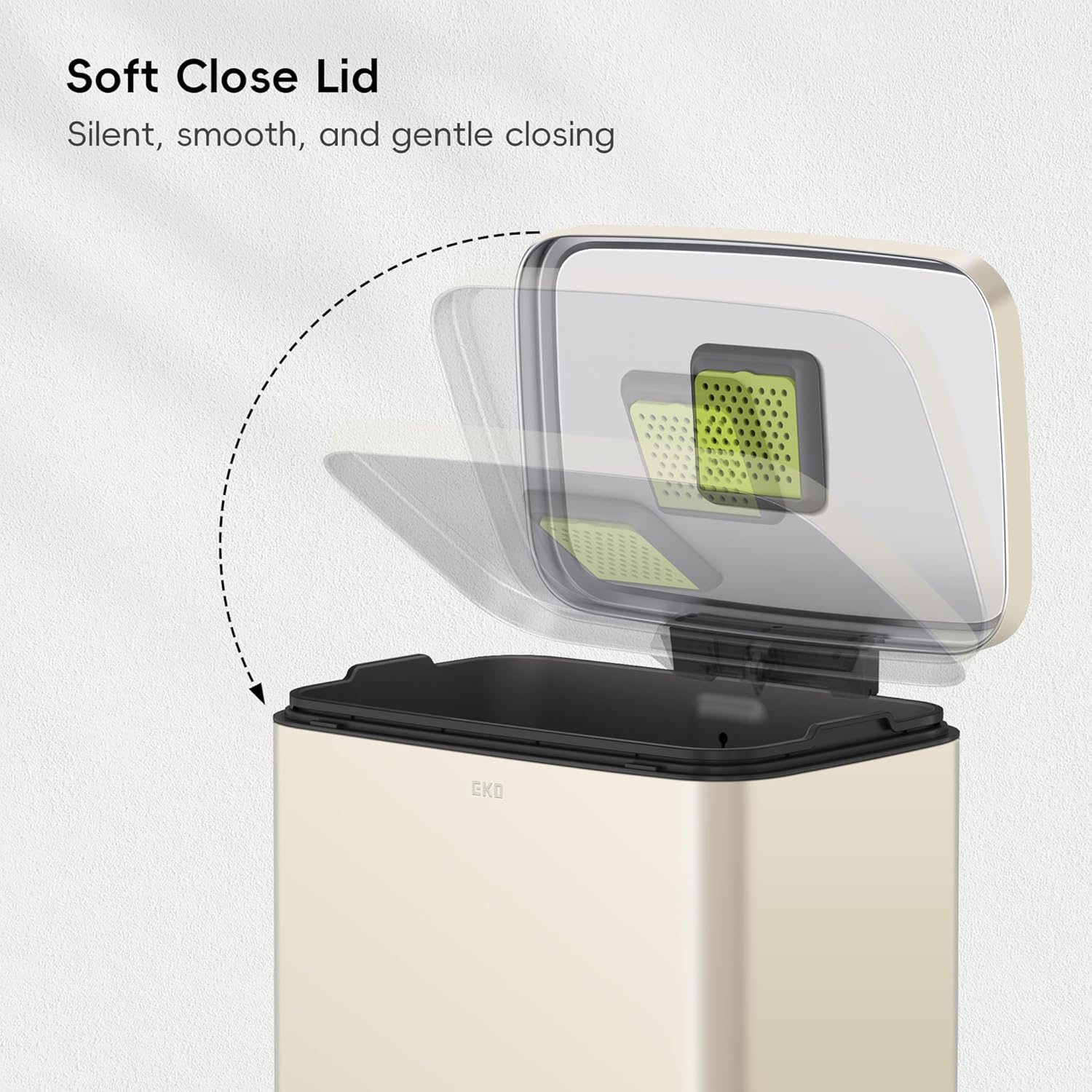 • Whisper-quiet Closing - The rugged step pedal mechanism is built to withstand years of daily use, and the bi-force damper soft open and close lid prevents slamming and banging.