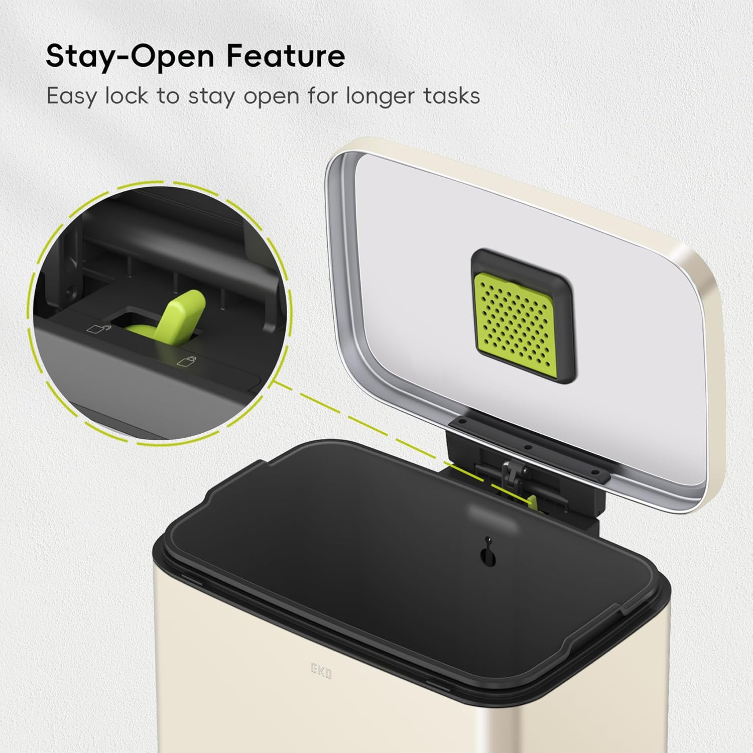 • Stay Open and Do Your Thing - This kitchen garbage can boasts an easy-to-use lid lock, ensuring it stays open as long as needed.
