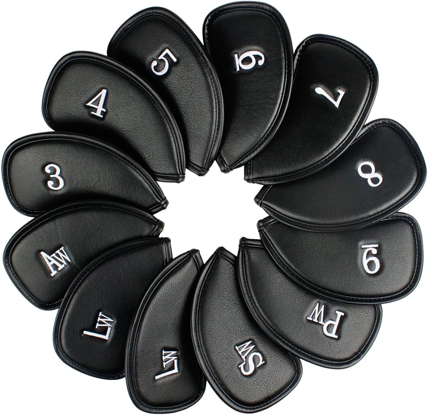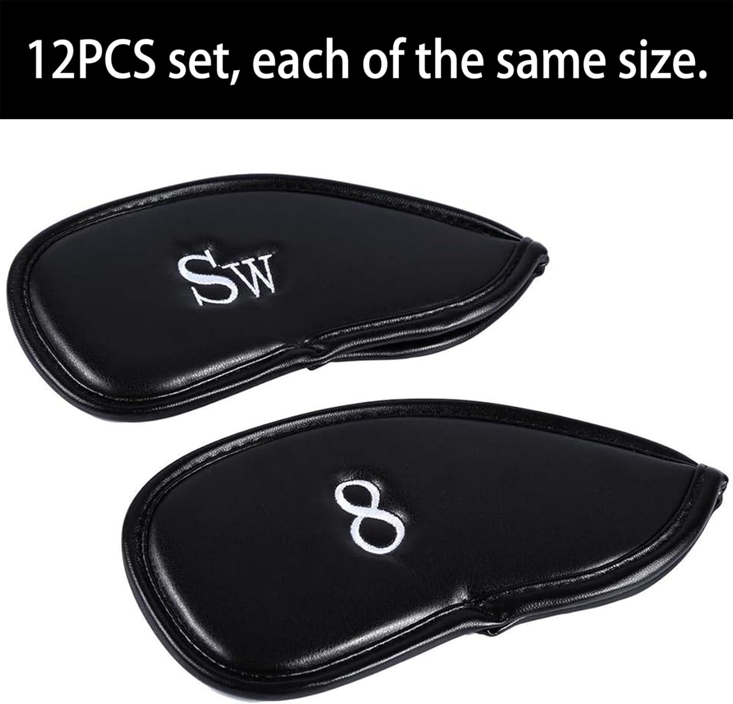 Golf Iron Head Covers (12-Pack) Synthetic Leather Waterproof Club Head Covers for Standard Irons – Magic Tape Closure, Universal Fit & Anti-Loss Design