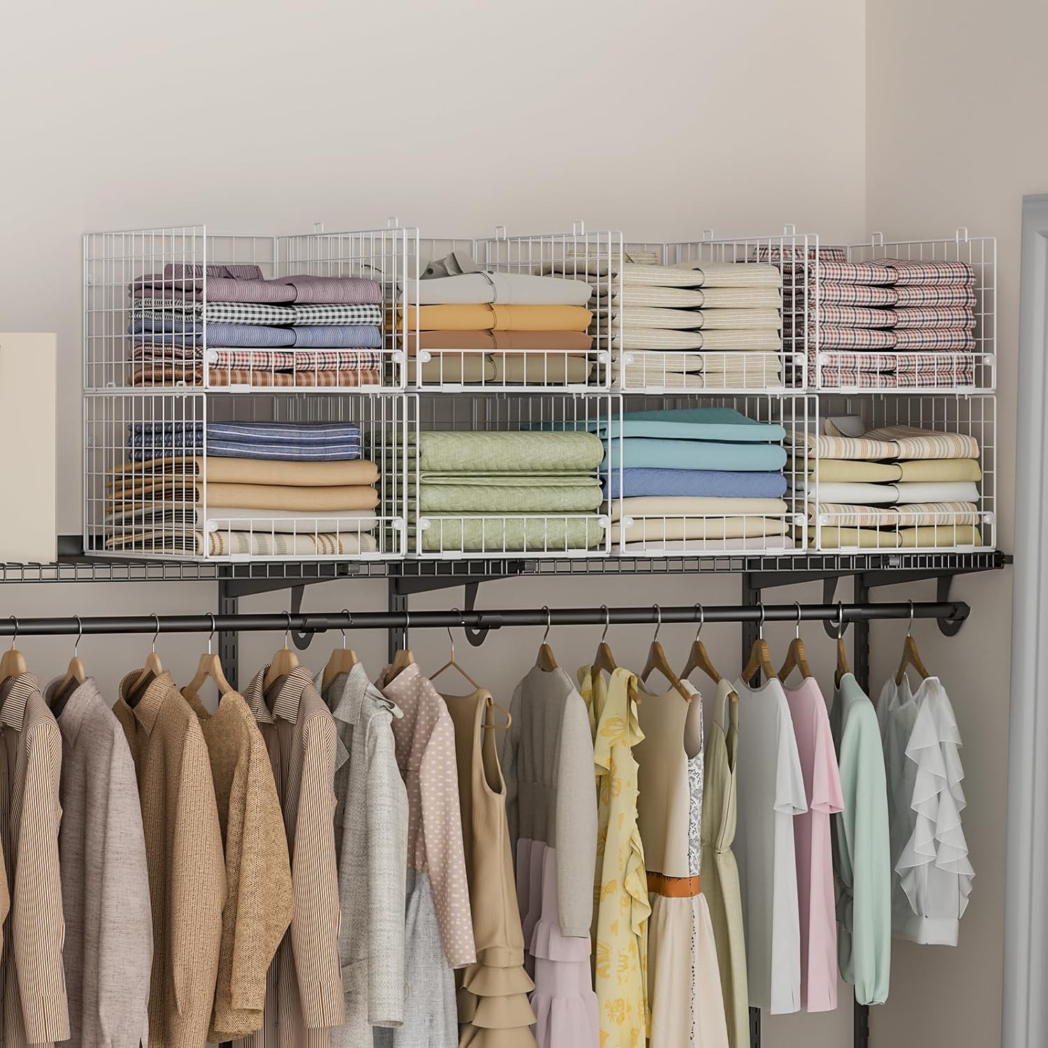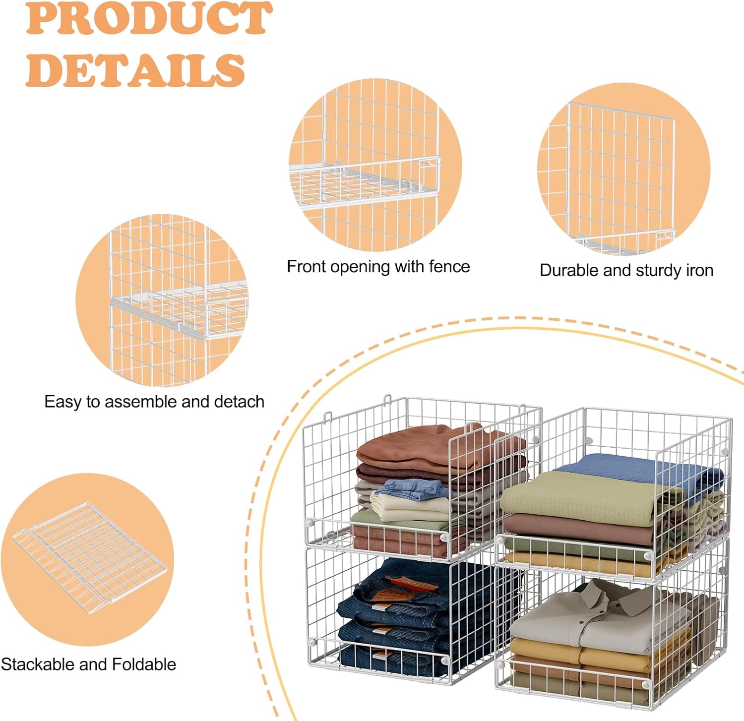 • 【Sturdy Iron Mesh】Made of premium iron mesh,these closet storage bins are sturdy,durable,breathable,visible,no smell and washable.Would not bend or damage like plastic or cloth storage baskets. You can count on it is strong enough and has a good craft.