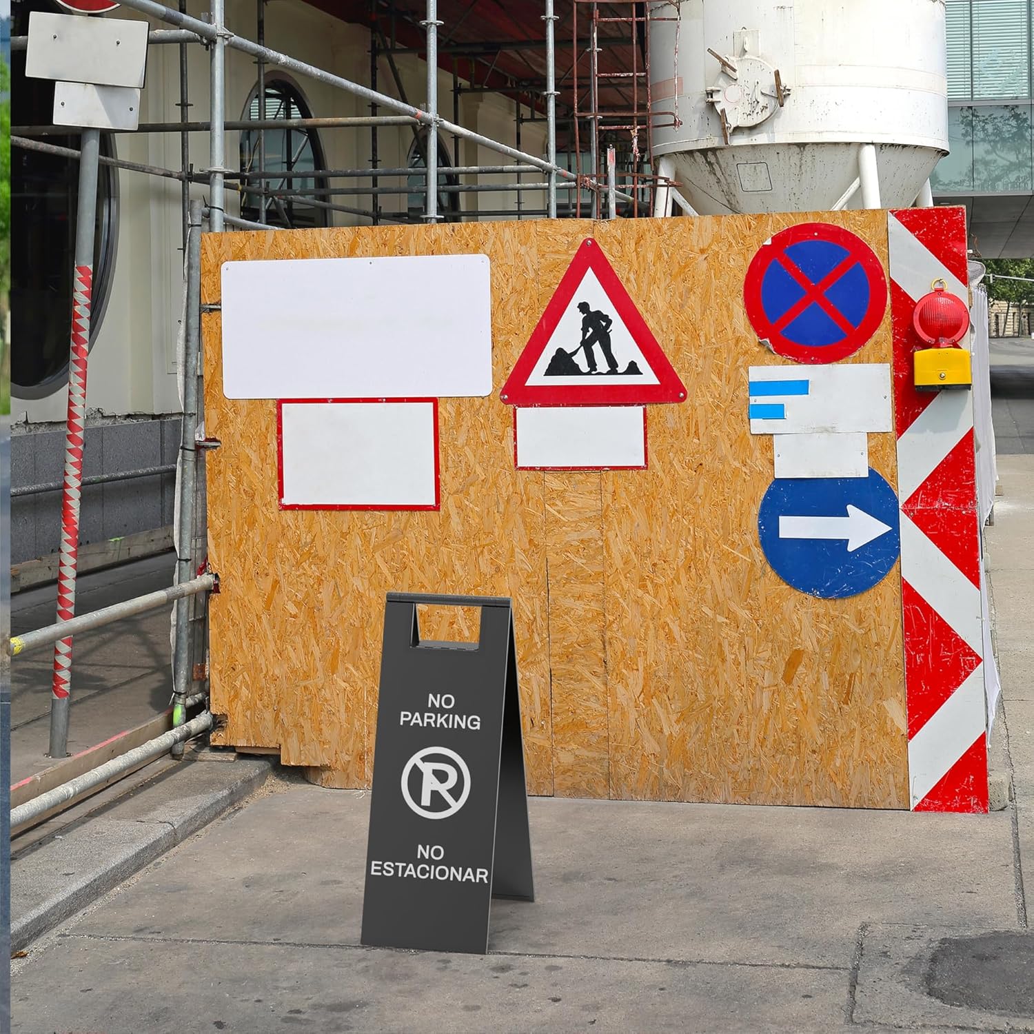 Stainless Steel No Parking Sign Portable Foldable Handle 2-Pack (Black)