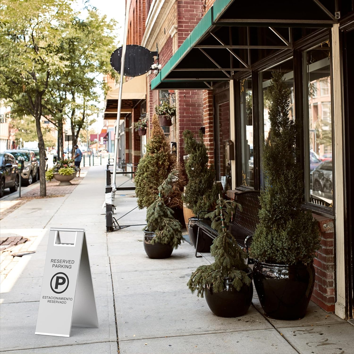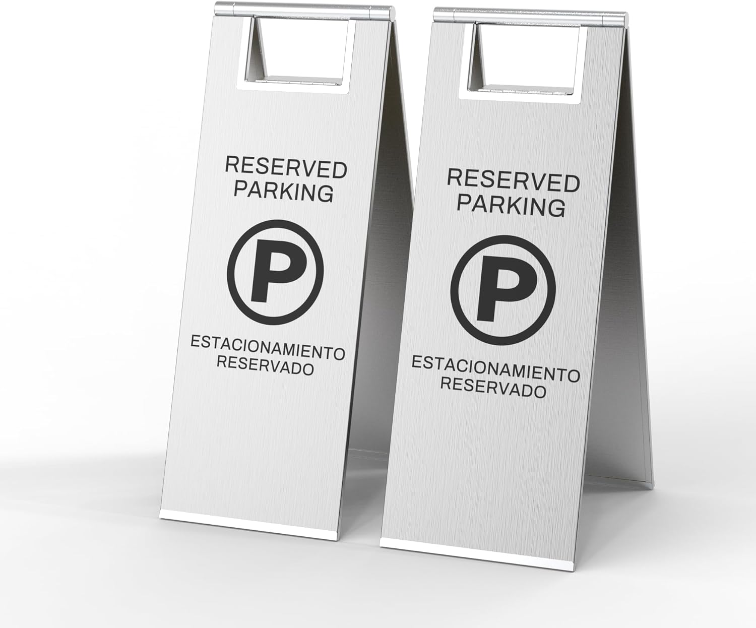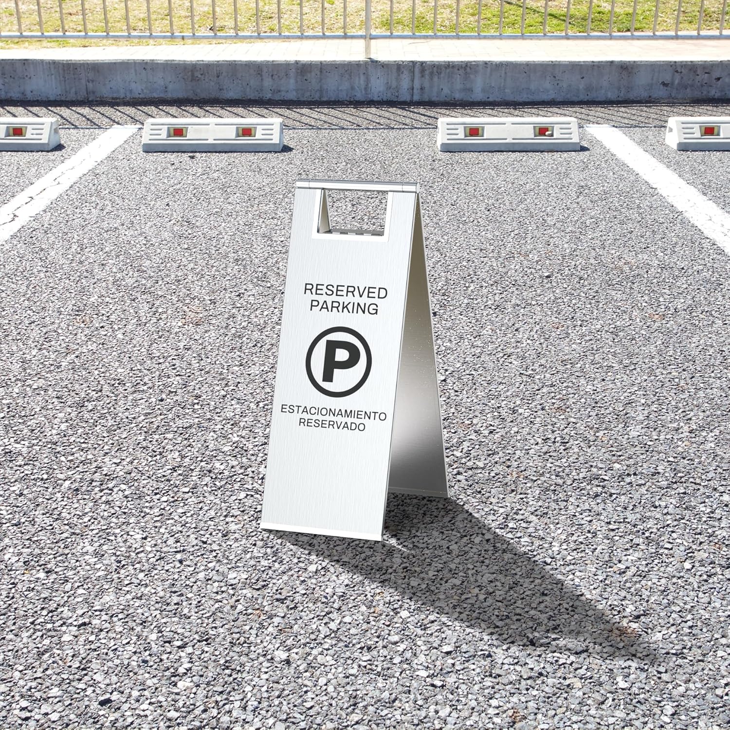 Reserved Parking Sign – Foldable Heavy Duty Plastic A-Frame with Bold “P” Symbol, Bilingual English & Spanish – 24" Tall Reserved Spot Marker for Storefront, Driveway, Garage – Silver