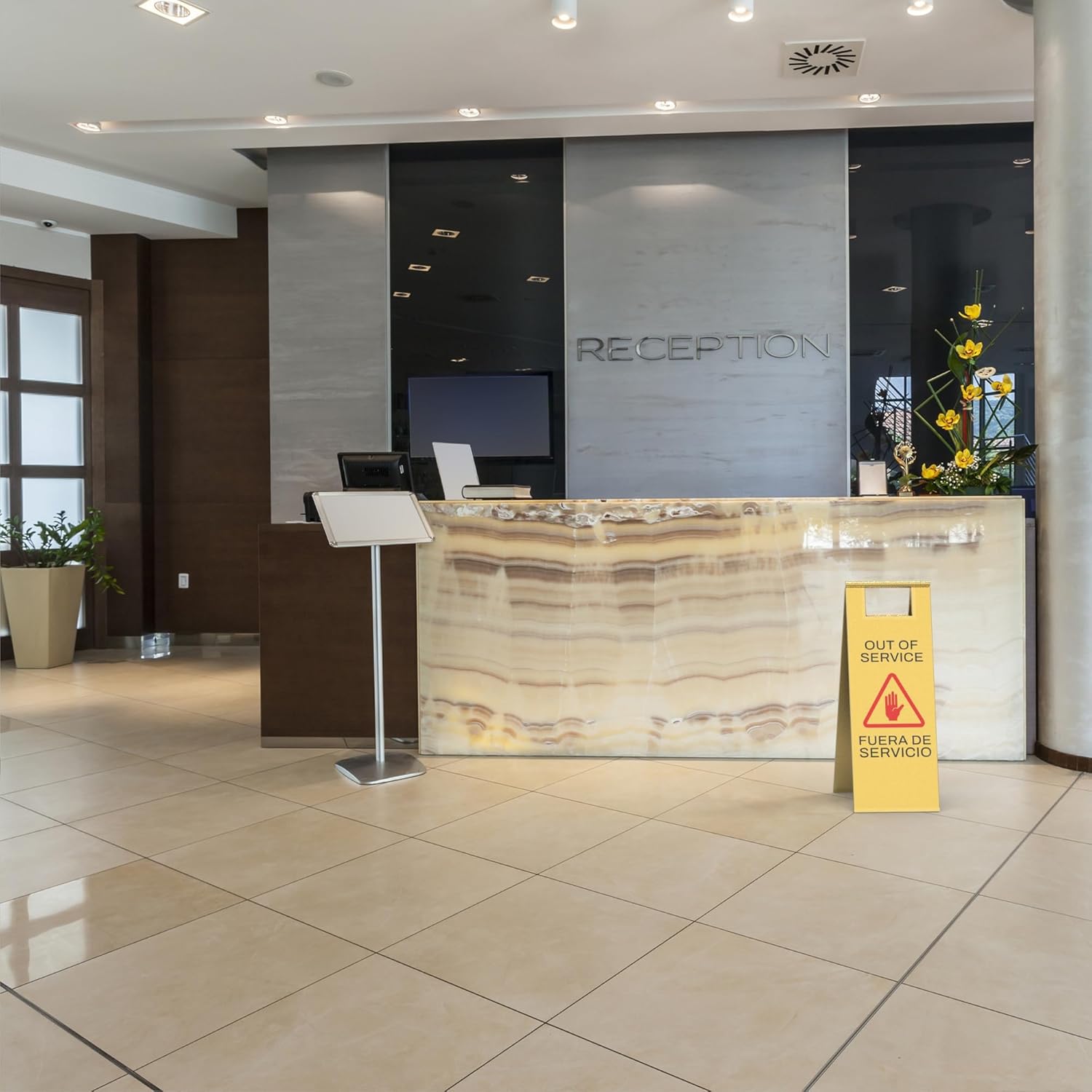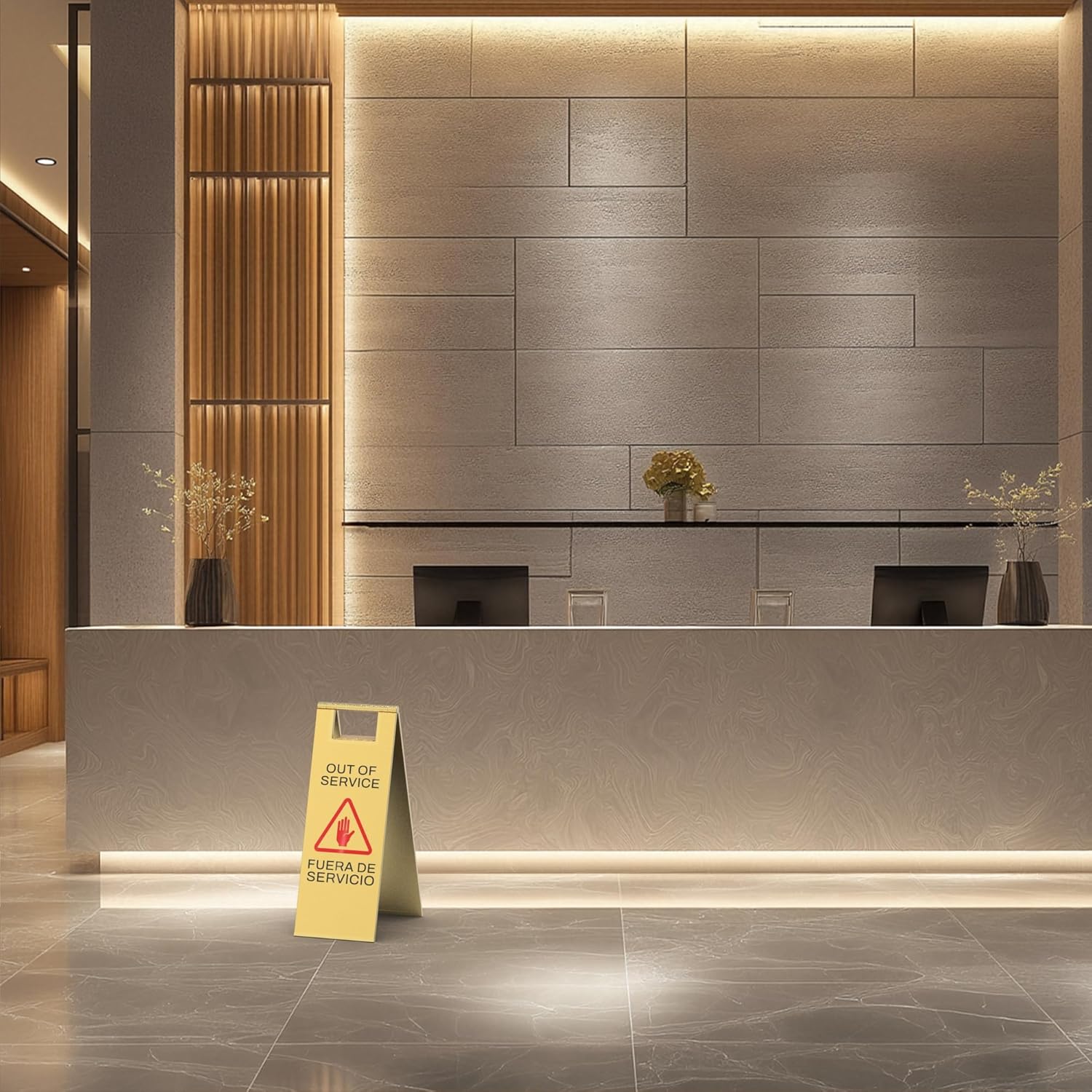 • Commercial-Grade Stainless Steel – Durable & Rust-Resistant Built from high-quality stainless steel with a brushed finish, this 8.8 lb caution sign is corrosion-resistant, scratch-proof, and designed for heavy-duty daily use in restaurants, hotels, malls, and office buildings
