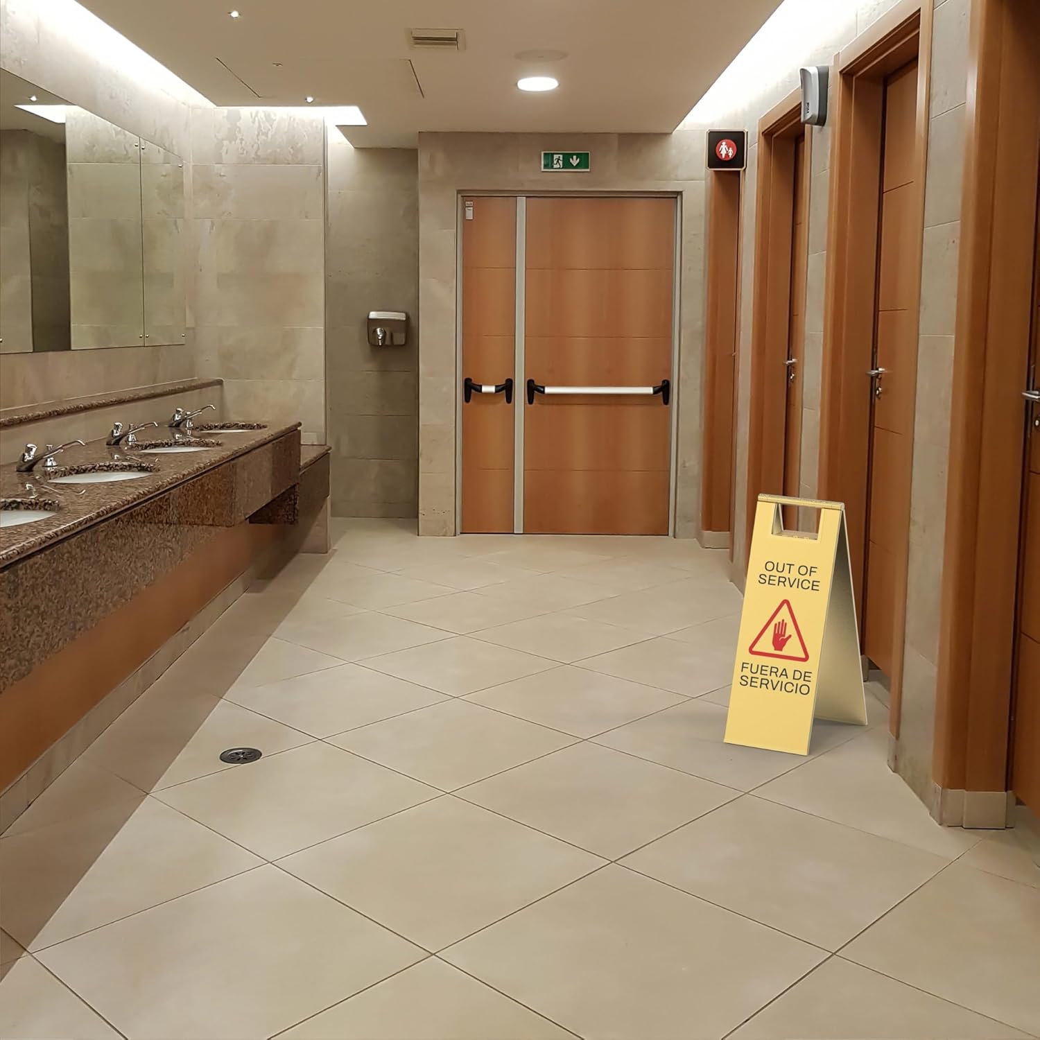 • Double-Sided Bilingual Warning – Boosts Safety Awareness Features clear “Out of Service” and “FUERA DE SERVICIO” text on both sides, along with a universal falling icon. Provides instant visual alerts to help prevent slip-and-fall incidents in multilingual environments