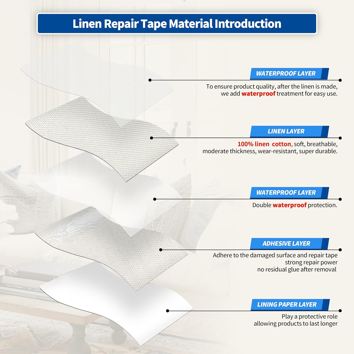 • Soft Fabric Repair Tape: Classic size 16" x 80", economical and practical, made of pure cotton linen repair tape, with a smooth and soft surface, comfortable and breathable, scratch-resistant and durable, it does not fade after long-term use, providing the comfort you desire while completing the repair.