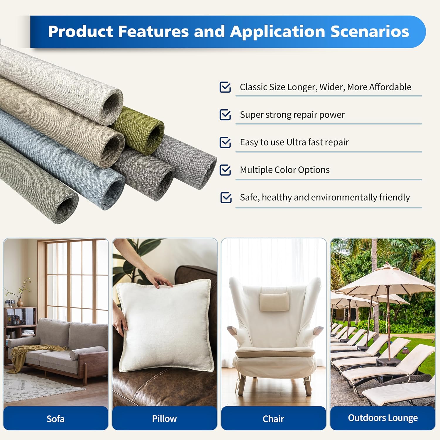 • Soft Fabric Repair Tape: Classic size 16" x 80", economical and practical, made of pure cotton linen repair tape, with a smooth and soft surface, comfortable and breathable, scratch-resistant and durable, it does not fade after long-term use, providing the comfort you desire while completing the repair.