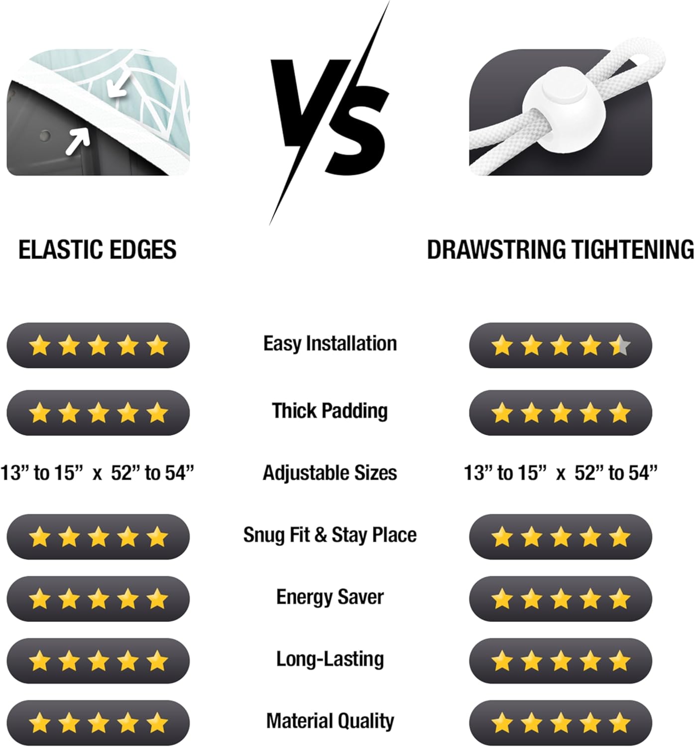 • EASILY FITS STANDARD 15x54 SIZE BOARDS: The ironing board cover can be installed very easily thanks to its durable adjustable drawstring tightening, strong fastener straps and sturdy nose pocket. It is designed for standart size boards in 15x54" dimensions.