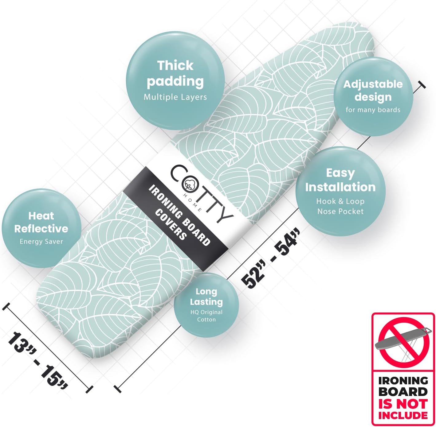 • EASY & QUICK IRONING : Accelerate and make simple your ironing process with our innovative ironing board cover. Heat reflective coated that reflects heat rather than absorbing it, this ironing board cover ensures faster and more effective ironing. Also the cover remains securely in place during use, thus you can finish your work more effortlessly.