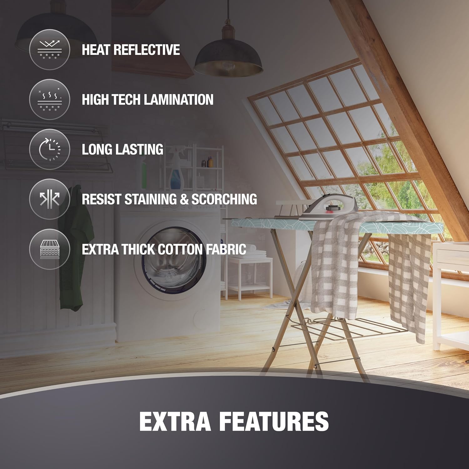 • TIME & ENERGY SAVER : The heat reflective coating of the ironing board cover allows you to iron faster and easier. Thus, you can easily do your ironing work by spending less energy and time. Also this heat-reflective coating technology durable against frequent use.