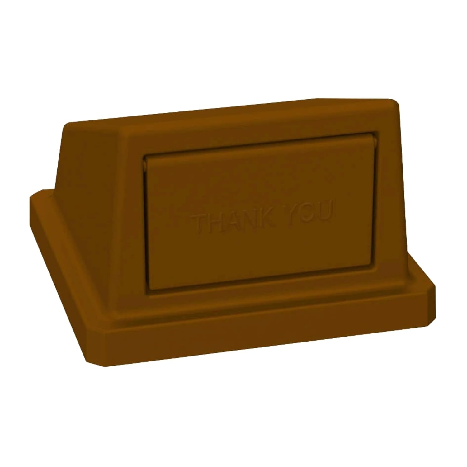 32 Gallon Square Slatted 100% Recycled Plastic Heavy-Duty Commercial Outdoor or Indoor Trash Can with Push Top Lid | Great for Schools and Businesses - Brown