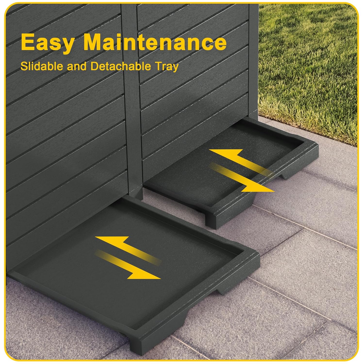 • Easy assembly: This outdoor trash bin comes with a detailed user manual. No screws or tools required, just snap the panels together and the installation can be completed in about 10 minutes. For more support, please refer to the installation videos on the page
