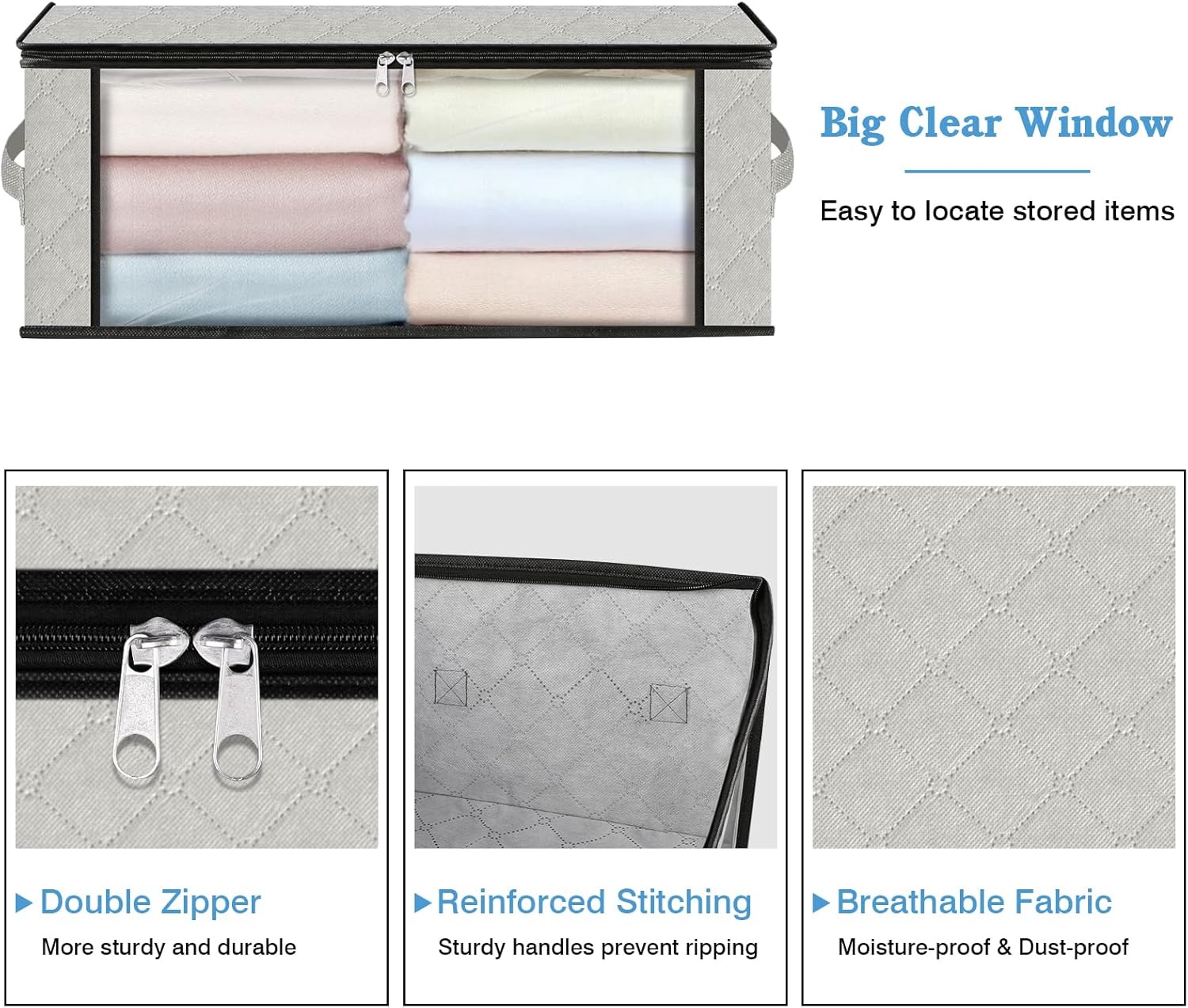 • Premium Material: The storage bins are made of premium polypropylene non-woven fabric which is breathable, moisture-proof and dust-proof. Reinforced seams and 3 layers fabric provide greater load-bearing capacity