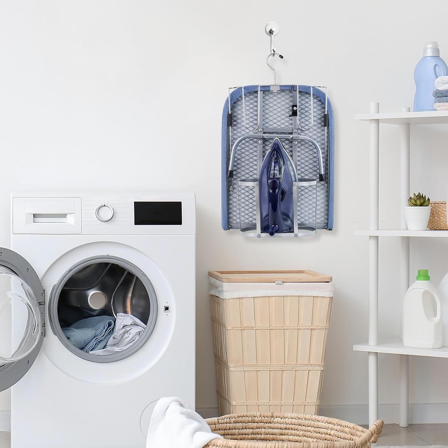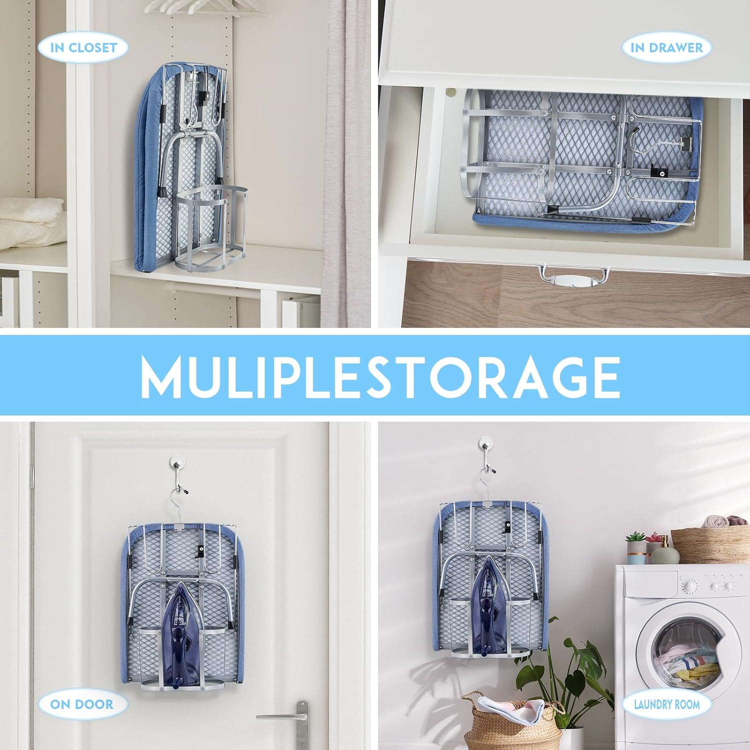 • ALL IN ONE STORAGE STABILITY- Iron and ironing board set never lose your iron again! When using a small ironing board, pulling out the iron holder can place the iron. Even if the iron is still warm after ironing, it can be placed directly in the storage basket. No more worries about storing irons