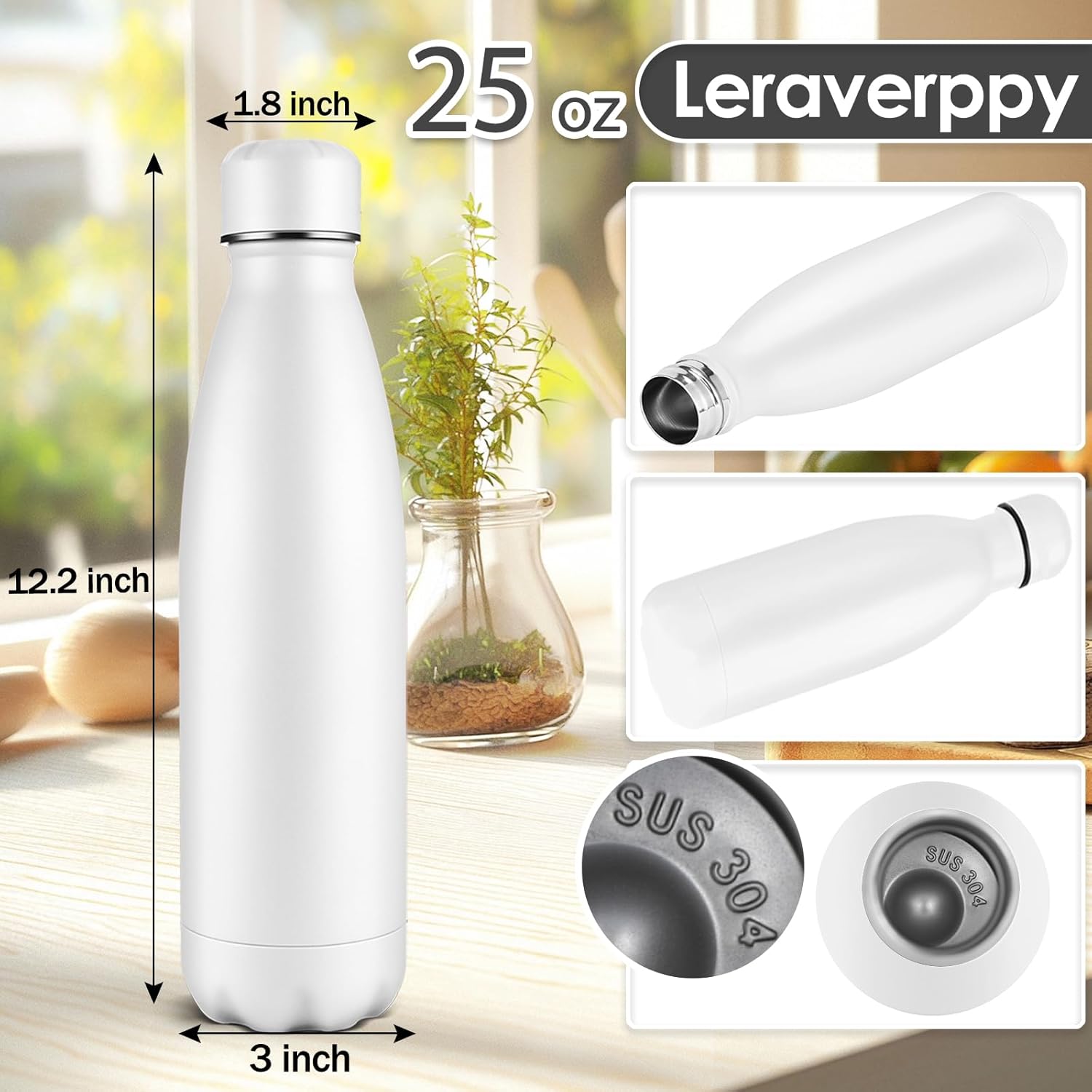25oz Cola-Bottle Shaped Stainless Steel Leak-proof Water Bottle,Double Wall Vacuum Insulated Metal,Travel Mug For Sports Indoors & Outdoors,BPA-Free School Kids Flasks,White(4 Pack)