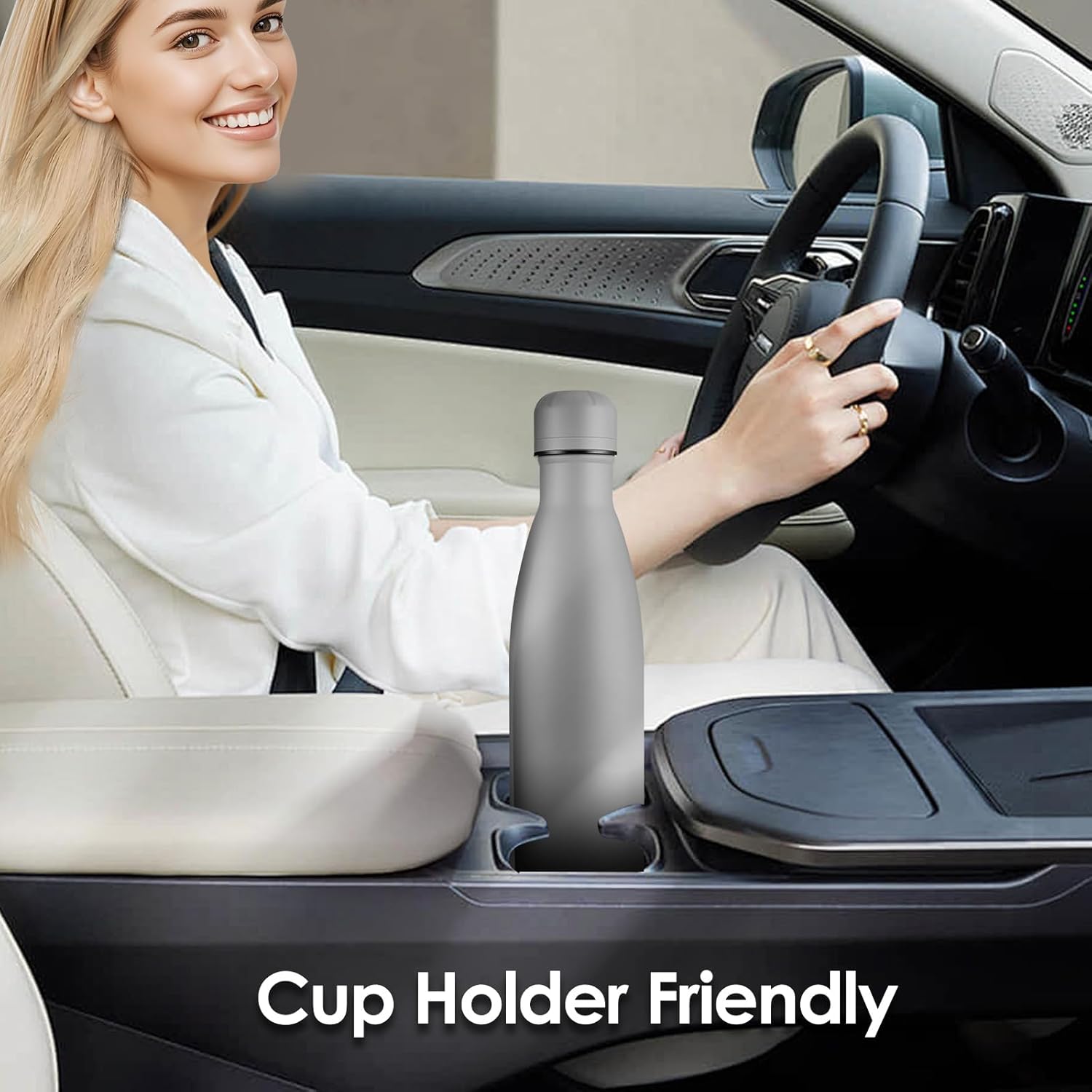• 《Portable Size and Wide Use》17oz insulated water bottle is the good size for kids and adults.With a portable lid and light weight so you can carry it anywhere with ease.The Convenient bottle is the good choice for the bike or car cup holder,side pockets of backpack,gym,school,work,camping hiking biking beach trips,picnics and any other indoor or outdoor activity.