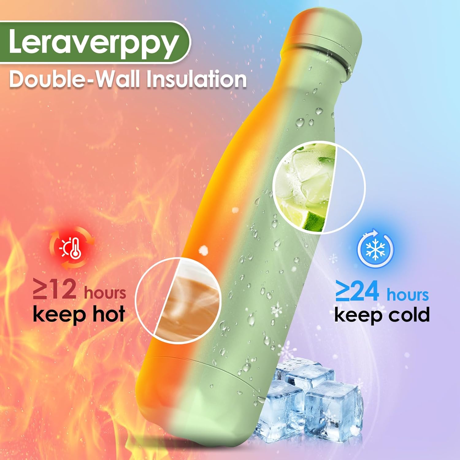 • 《Double Wall Vacuum Metal Water Bottle and Amazing Gift》This insulated water bottle is double walled and vacuum sealed,which keeping them ice cold for 24 hours and steaming hot for 12 hours.With healthy and reusable stainless steel,durable everyday water bottle is suitable for everyday use and also as an amazing gift for yourself or your partners friends family colleagues employees teachers etc.