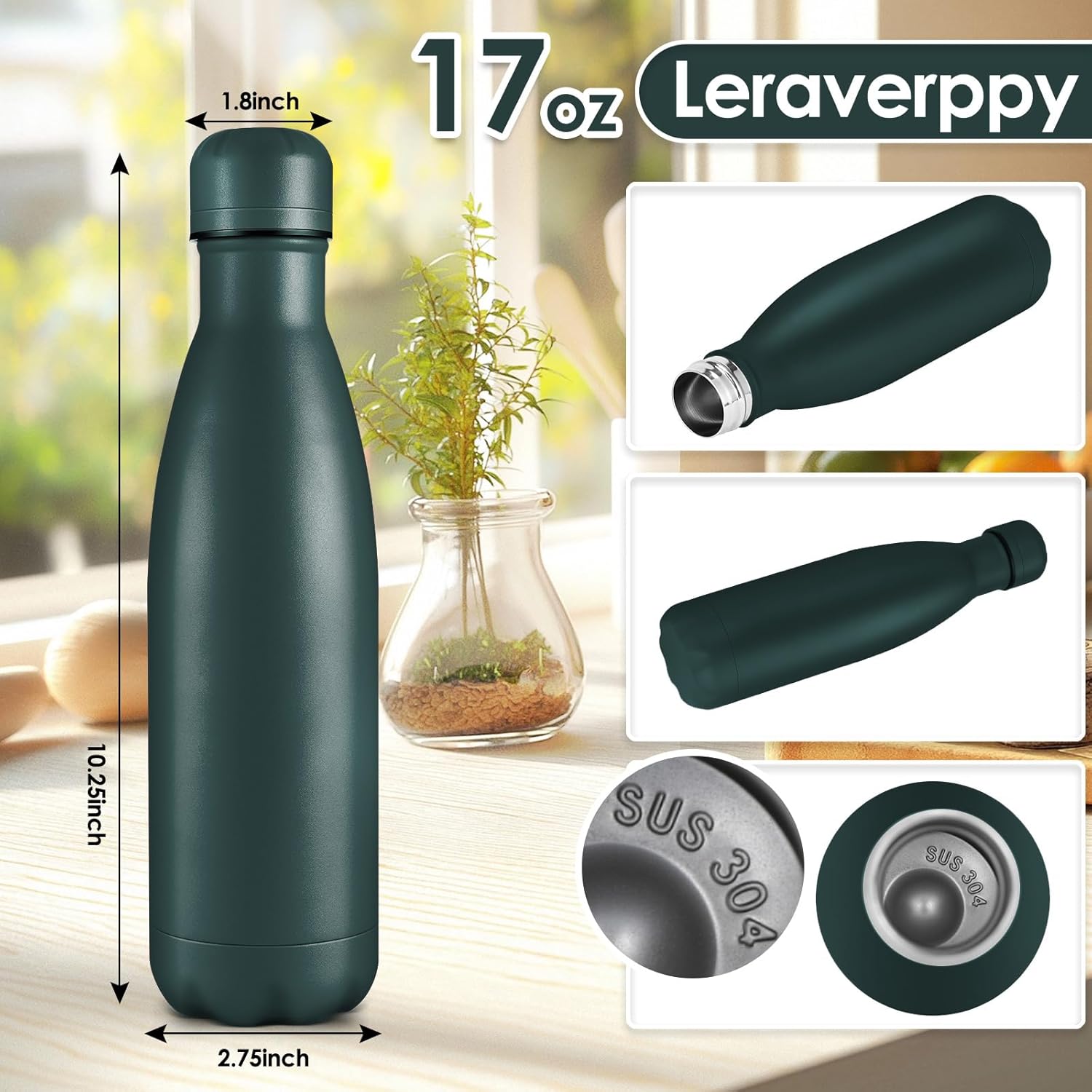 • 《Food-Grade 18/8 Stainless Steel Liner》Our water bottle is made of 18/8 food-grade known as 304 stainless steel.BPA Free,Non-toxic,No metallic taste,safe and healthy for all your water needs.Moms can trust our 304 stainless steel water bottles — designed to keep your little one’s drinks safe and healthy.Drink in the joy of every drop in your healthy life.