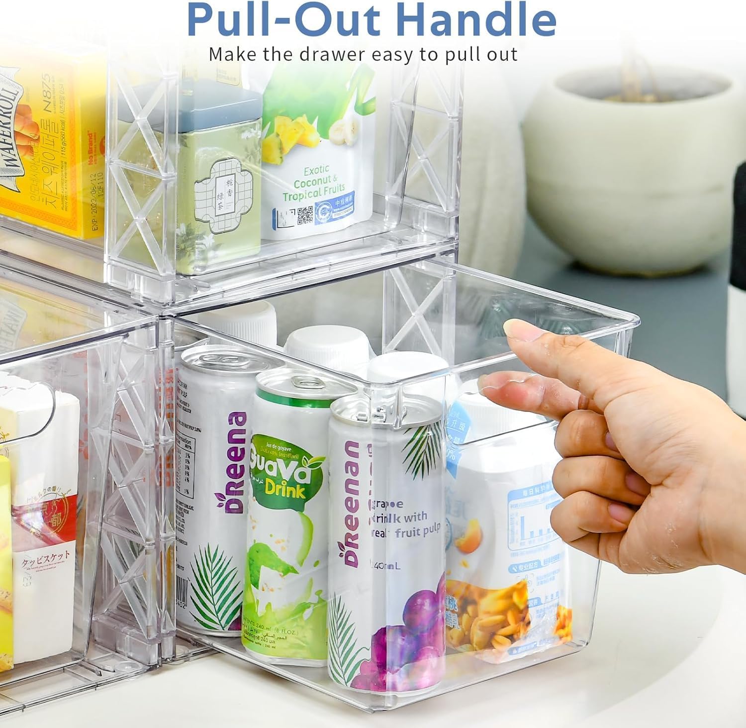 • MULTI-USE ORGANIZER - You can use these bins for various things throughout your home to organize and make your life easier. You can use these clear storage drawers for organizing snacks,drinks,facial maskscosmetics,makeup,medicine,baby bottles and other daily items in pantry,cabinets, bathroom closet,bathroom undersink,say goodbye to clutter in every room of your home