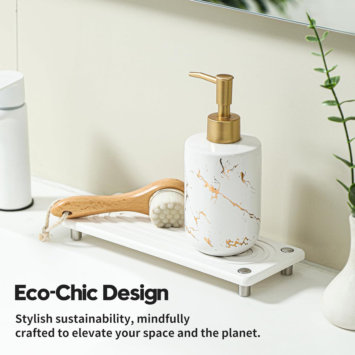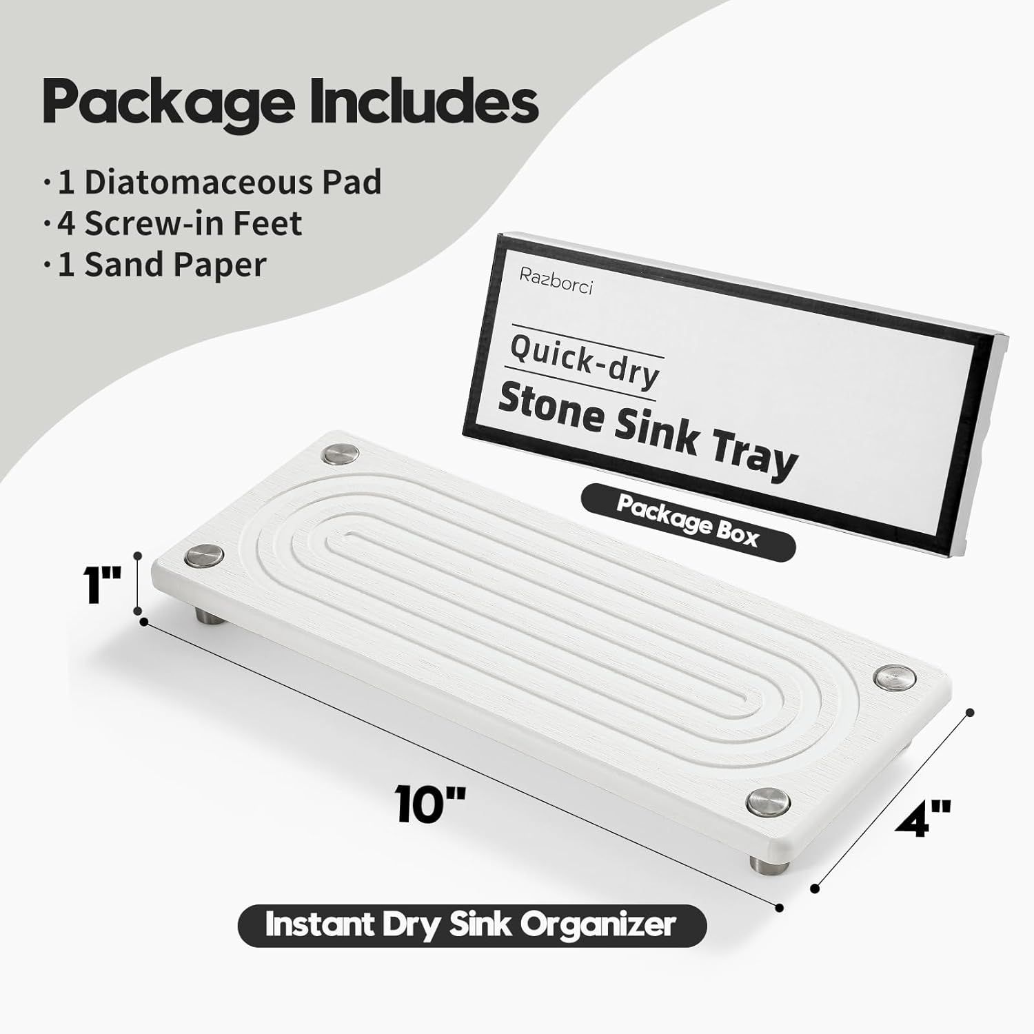 • 【Multifunctional Water Absorbing Stone Tray for Sink】 Using this tray for your soaps and brushes in the bathroom, or by the kitchen sink. The fast drying sink caddy provides you with a neat and orderly space for your home.