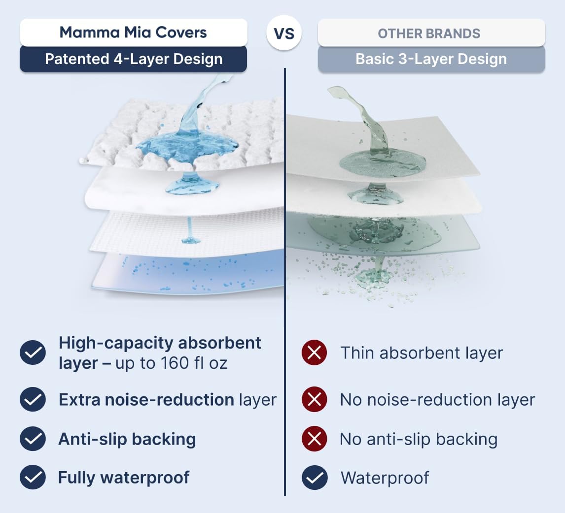 • NOISELESS & BREATHABLE: Enjoy silent sleep with a noiseless water proof layer that eliminates the plastic-like crinkling common in cheaper protectors. Our WavyTech technology enhances airflow and regulates temperature, making it perfect for hot sleepers or sensitive skin.