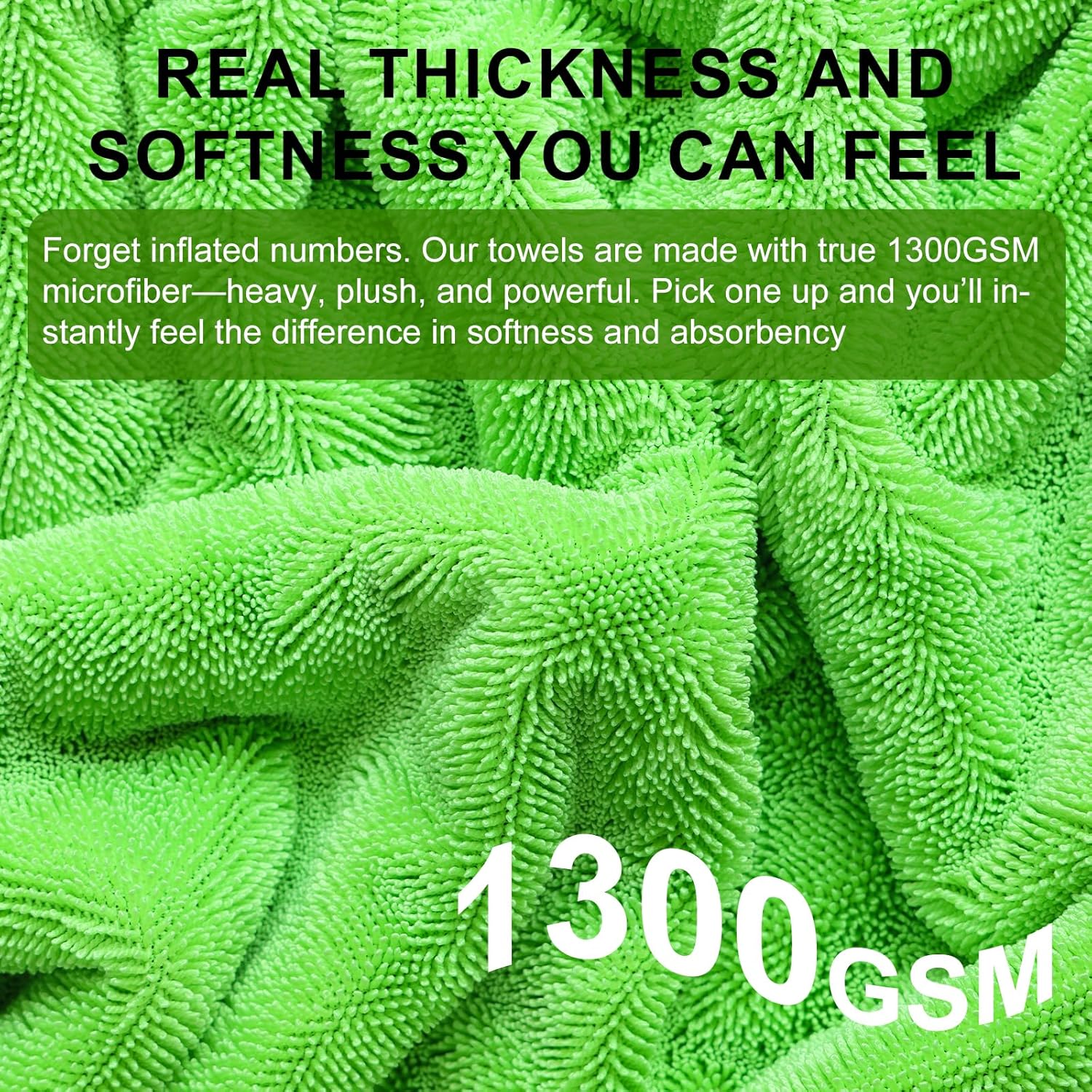 • Genuine 1300GSM – Real Thickness You Can Feel: Forget inflated numbers. Our towels are made with true 1300GSM microfiber—heavy, plush, and powerful. Pick one up and you’ll instantly feel the difference in softness and absorbency