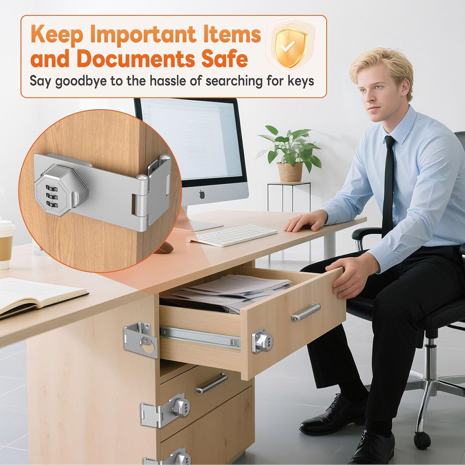 • Multi-Scenario Adaptation: This folding cabinet door lock is designed for 90° angle cabinets, support left & right bi-directional flexible installation, widely adapted to office filing cabinets, drawers, storage cabinets, safes, mailboxes, etc., to enhance the security level of different cabinets