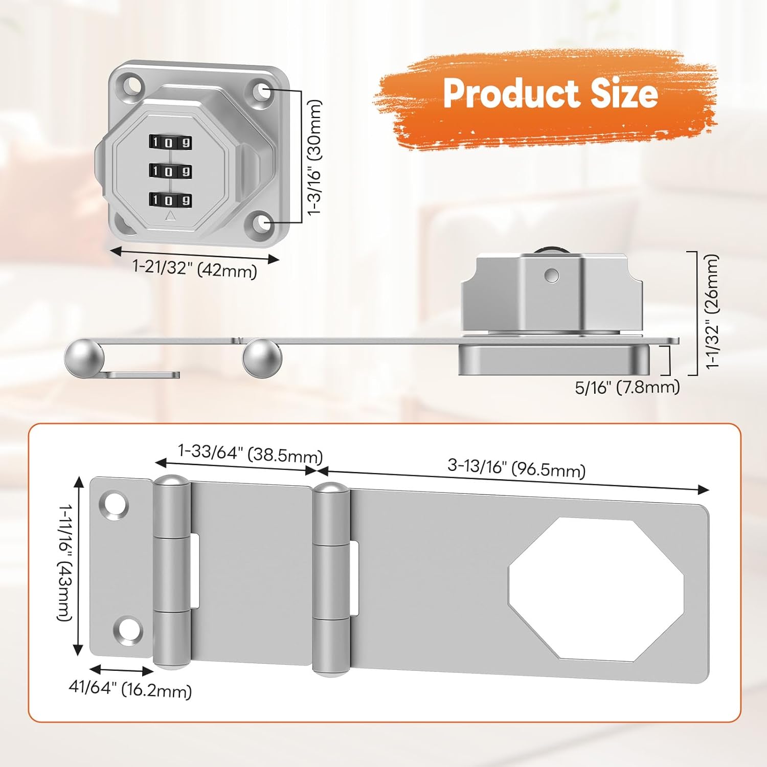 • Package Kit: Includes 2 x 90° cabinet locks with combination, 30 x screws, 16 x expansion tubes, 1 x installation manual, complete accessories, easy to install