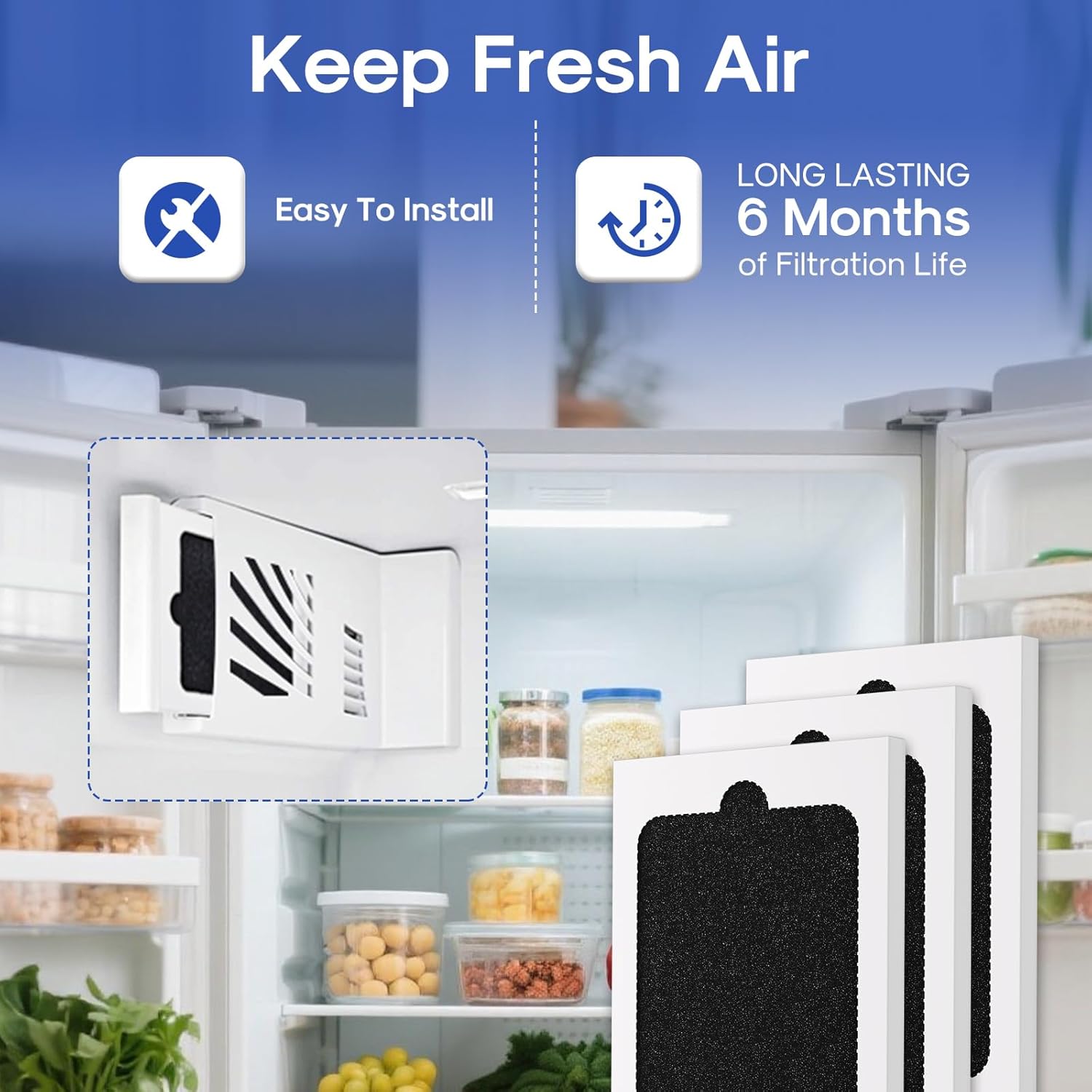 • Long Lasting Freshness - Our refrigerator air filter have a lifespan of up to 6 months. You don't need to replace them frequently, which saves your time and energy. To keep your refrigerator fresh for a long time, we recommend that you replace the filter every six months to keep the food in your refrigerator fresh.
