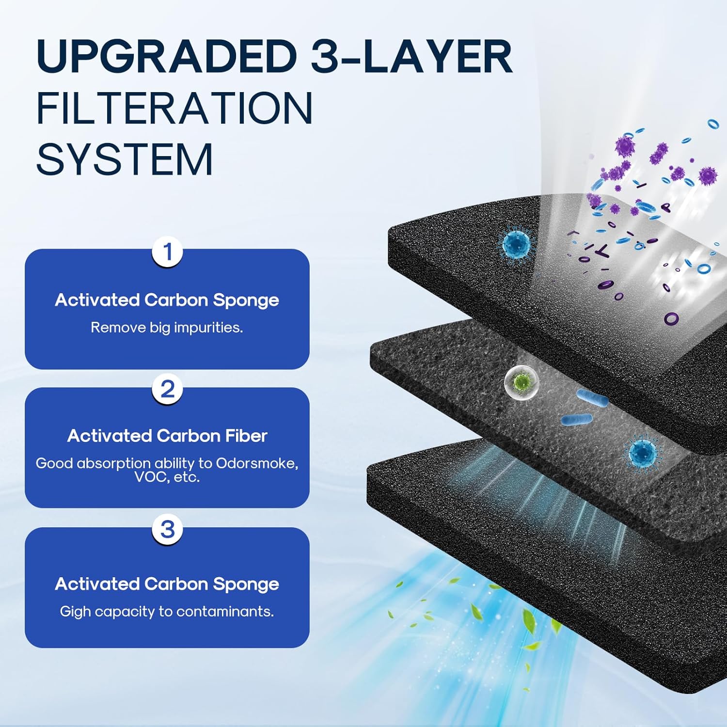 • High Quality Materials - The ICEPURE AF001 refrigerator air filter replacement for EAFCBF, it features high-quality three-layer activated carbon, A-Non-woven Cloth: for removing larger impurities; B-Activated Carbon Fiber: It can effectively adsorb odors and volatile organic compounds to keep the air in the refrigerator fresh. C-Activated Carbon Sponge: High dirt-holding capacity and long service life.