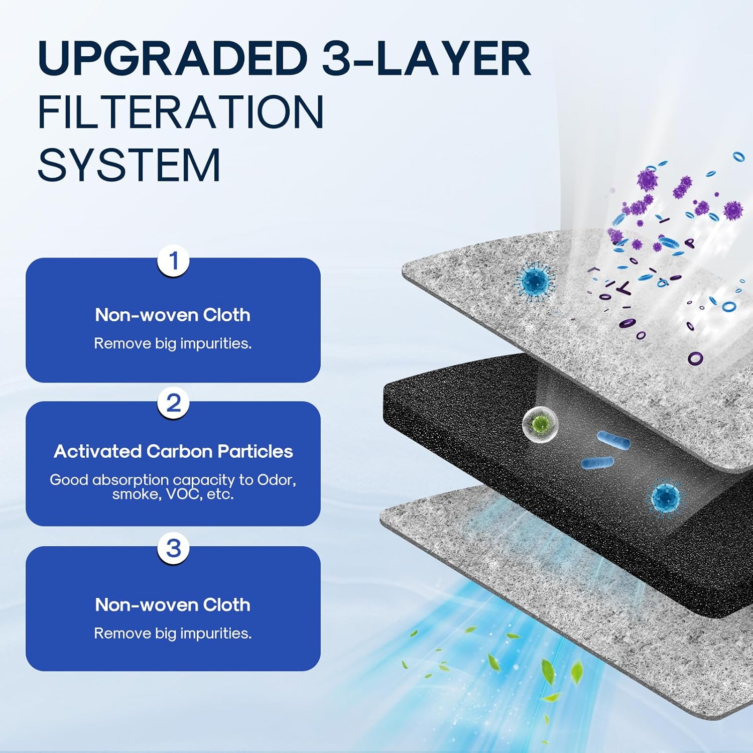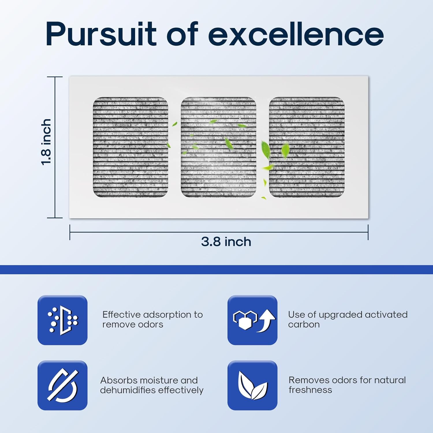 • Activated Carbon Air Filter - The refrigerator air filter is equipped with three layers of high-quality carbon. It can remove larger impurities, purify water quality, and has a good absorption capacity for odors, smoke, etc. It can effectively eliminate unpleasant smells and keep the air in your refrigerator fresh.