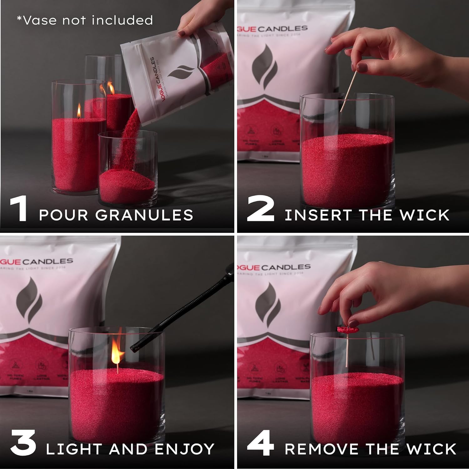 Vogue Candles 1LB Candle Sand with 15 Wicks | Plant-Based Refillable Wax Granules for DIY Candle Making | Clean Burning, Unscented, Smoke-Free, Vegan Candle Refill Kit- Red
