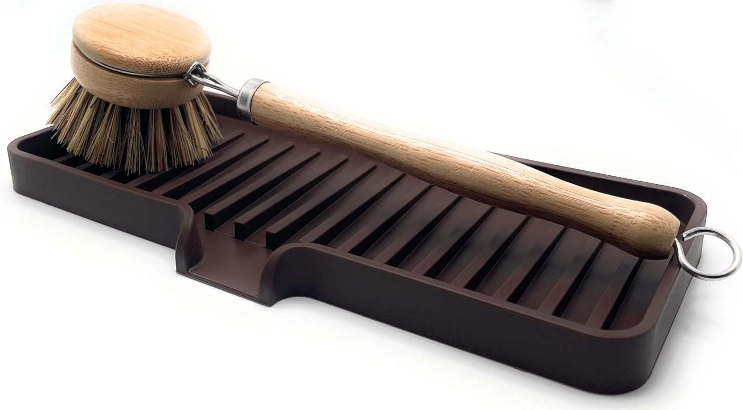 Happitasa Silicone Soap Dish Tray and Sponge Holder with Drain Chute | Bathroom and Kitchen Sink Organizer Caddy (Dark Chocolate, 9"x3.5", 5.6 Ounces)